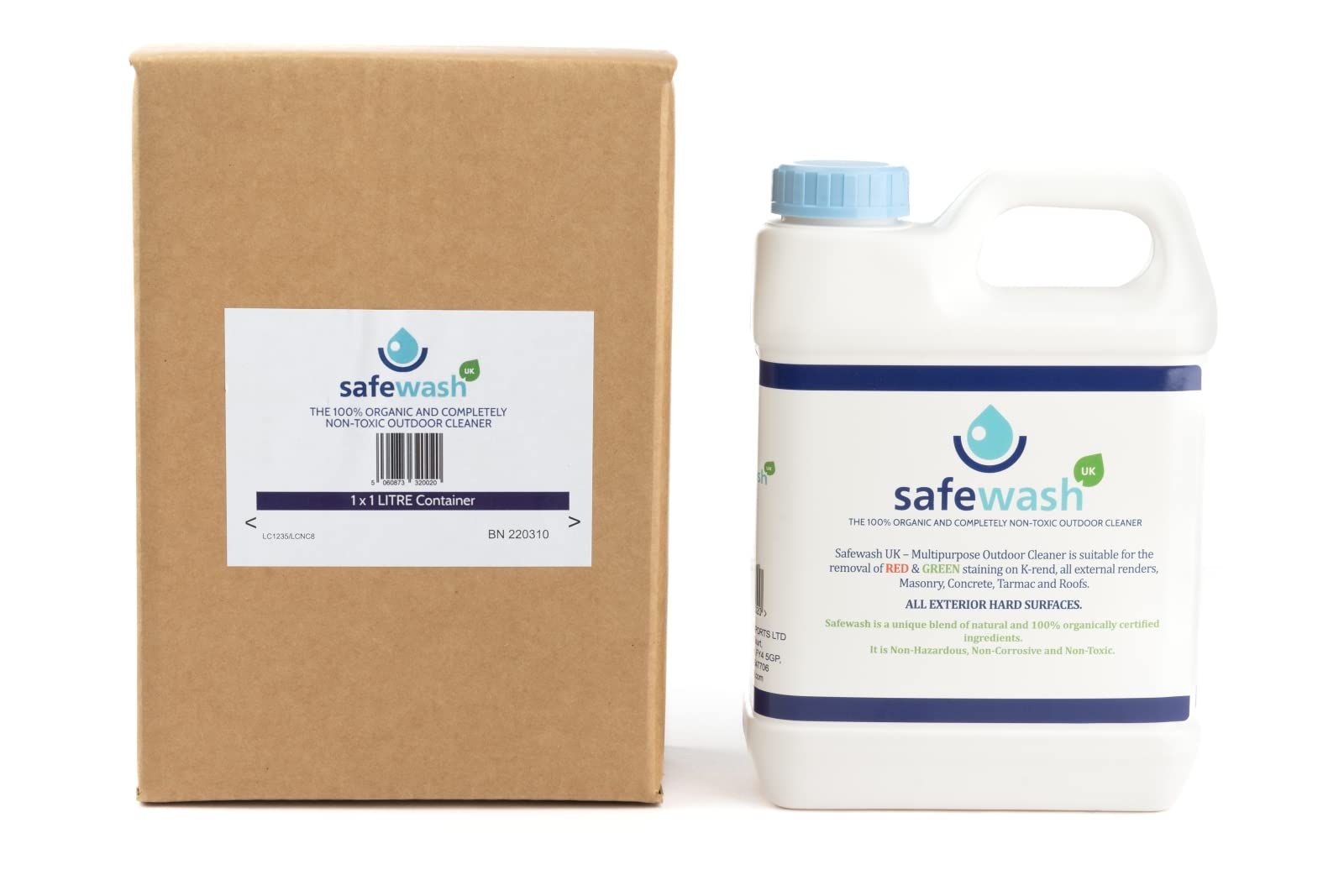 Safe wash UK 1-Litre Concentrate Bottle of Driveway & Patio Cleaner Fluid | Deck & Block Paving Concrete Cleaner/Weed Moss & Mildew Remover | Pet Friendly & Eco Friendly Cleaning Products