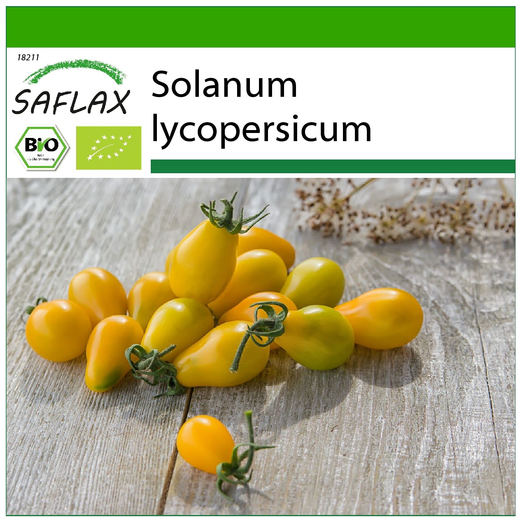 The bright yellow cherry tomato produces many small fruits in large clusters. The delicious, slightly pear-shaped, pointed fruits weigh about 20 grams on average. The small yellow sub is a variety that can be grown outdoors or in a cold room. In the kitchen: Tomato sauces and tomato soups are obviously popular, but whole tomato slices in vegetable and meat stews are also a great addition. Tomato sauces are an ideal addition to pizzas. Furthermore, tomatoes are a fundamental ingredient in many pasta dishes, such as lasagna. Sliced tomatoes with mozzarella, a few herbs, and olive oil make the famous Caprese salad. Mediterranean spices, such as oregano, thyme, sage, and basil, are ideal with tomatoes. Drying and storing tomatoes: Preheat your oven to 75 C (165 F). Wash the tomatoes and cut them in half lengthwise. Wash, dry, pat dry, and chop a few sprigs of thyme. Place the tomatoes on a baking sheet and sprinkle with the thyme. Dry them in a warm oven with the door slightly ajar for 7 to 10 hours, turning the sheet occasionally. The tomatoes are ready when they are dry but still firm enough to crush. Rinse a glass with hot water. Place the tomatoes, rosemary sprigs, and garlic in the glass. Pour in oil until the tomatoes are covered. Let it sit for at least a week. Due to technical limitations, we cannot display all of our detailed information here. You can find a clear image with all the information in the photos.The bright yellow cherry tomato produces many small fruits in large clusters. The delicious, slightly pear-shaped, pointed fruits weigh approximately 20 grams on average. The small yellow sub is a variety that can be grown outdoors or in a cold frame. (In the photos, you can find a picture of the back of our seed card with complete sowing and care instructions.) A sterile and breathable coconut fiber substrate ensures successful cultivation. High-quality seeds from Germany. Detailed instructions for successful propagation are included. 10 certified organic seeds per packet. A delicious little sub with pear-shaped fruits.SAFLAX - BIO - Tomate - Yellow submarine - 10 graines - Avec substrat de culture aseptique - Solanum lycopersicumDESCRIPTION DU PRODUIT La tomate cerise jaune vive produit beaucoup de petits fruits dans de grosses grappes. Les fruits délicieux, légèrement piriformes et pointus pèsent environ 20 grammes en moyenne. Le petit sous-marin jaune est une variété qui peut être cultivée en pleine terre ou dans une chambre froide. Dans la cuisine: Les sauces tomates et les soupes de tomates sont évidemment aimées, mais des parts de tomate entières dans les potées de légumes et de viande le sont aussi. Les sauces tomate sont un ajout idéal aux pizzas. De plus, les tomates sont un ingrédient fondamental dans beaucoup de plats de pâtes, comme la lasagne. Les tranches de tomates avec du mozzarella, quelques herbes et de l'huile d'olive donnent la célèbre salade caprese. Les épices méditerranéennes, comme l'origan, le thym, la sauge et le basilic sont idéales avec les tomates. Sécher et conserver les tomates : Préchauffez votre four à 75 C. Lavez les tomates et coupez-les en deux sur la longueur. Lavez, séchez, épongez et hachez quelques branches de thym. Mettrez les tomates sur la plaque et saupoudrer avec le thym. Séchez dans le four chaud avec la porte légèrement ouverte pendant 7 à 10 heures - tournez la plaque de temps en temps. Les tomates sont prêtes lorsqu'elles sont sèches mais peuvent encore être pilées. Rincez un verre avec ce l'eau chaude. Mettez les tomates avec des branches de romarin et de l'ail dans le verre. Versez de l'huile jusqu'à ce que les tomates soit couvertes. Laissez le tout reposer pendant au moins une semaine. En raison de limitations techniques, nous ne pouvons pas représenter toutes nos informations détaillées ici. Dans les photos vous pouvez trouver une image lisible avec toutes les informations.La tomate cerise jaune vive produit beaucoup de petits fruits dans de grosses grappes. Les fruits délicieux, légèrement piriformes et pointus pèsent environ 20 grammes en moyenne. Le petit sous-marin jaune est une variété qui peut être cultivée en pleine terre ou dans une chambre froide. ….. (Dans les photos vous pouvez trouver une photo de l'arrière de notre carte de semences avec les instructions de semis et de soins complets). Un substrat fibreux de coco aseptique et respirant pour une culture réussie. Des graines de qualité en provenance d'Allemagne. Avec des instructions détaillées pour la propagation réussie. 10 graines certifiées bio par paquet. Un petit sous-marin délicieux avec des fruits piriformes.