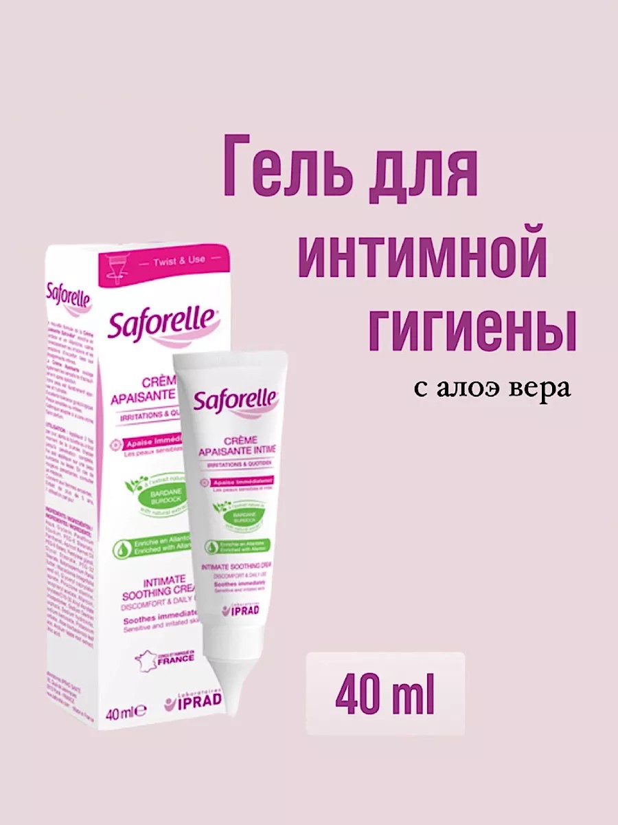 САФОРЕЛЬ КРЕМ-ЭМОЛЕНТ УВЛАЖНЯЮЩИЙ ДЛЯ ИНТИМНОЙ ЗОНЫ 40МЛСАФОРЕЛЬ Крем-эмолент увлажняющий для интимной зоны - косметическое средство для увлажнения кожи на основе натурального экстракта репейника, аллантоина и алоэ вера.Внешний вид: Кремообразная текстура от белого до светло-бежевого цвета с натуральным, нейтральным, быстро уходящим ароматомСпециальные особенности: Не содержит красителей, парабенов, феноксиэтанола, метилизотиазолинона.Возраст с 5 лет.Активные компоненты:Репейник, входящий в состав, успокаивает, снимает раздражение и смягчает.Алоэ вера, входящее в состав: увлажняет и успокаивает.Масло макадамии, входящее в состав, питает.Масло ши, входящее в состав: питает, смягчает и служит эмолентом.Пантенол (про-витамин В5), входящий в состав: заживляет, успокаивает и снимает раздражение.Аллантоин, входящий в состав: успокаивает, снимает раздражение, смягчает, служит эмолентом.Полисахарид, входящий в состав: успокаивает и снимает раздражение.Не содержит красители, парабены, феноксиэтанол, метилизотиазолинон.Назначение:Косметическое средство для увлажнения кожи на основе натурального экстракта репейника, аллантоина и алоэ вера. Предназначено для ухода за наружными половыми органами и участками тела вокруг них в целях поддержания их в нормальном функциональном состоянии и придания им приятного запаха.Крем-эмолент протестирован под контролем гинекологов, дерматологов и педиатров и имеет высшую оценку по гинекологической и дерматологической переносимости.Подходит для ежедневного использования (до 2-х раз в день).Ежедневное использование продукта помогает снять раздражение и защитить кожу и слизистую оболочку в интимной зоне.Показания (сухость):Подходит для увлажнения интимной зоны и тела.Значительно увеличивает увлажнённость кожи: увеличивает увлажнение на 83,7% через один час после нанесения продукта, на 79,6% через 4 часа*. Эффект увлажнения длится до 4 часов после нанесения.