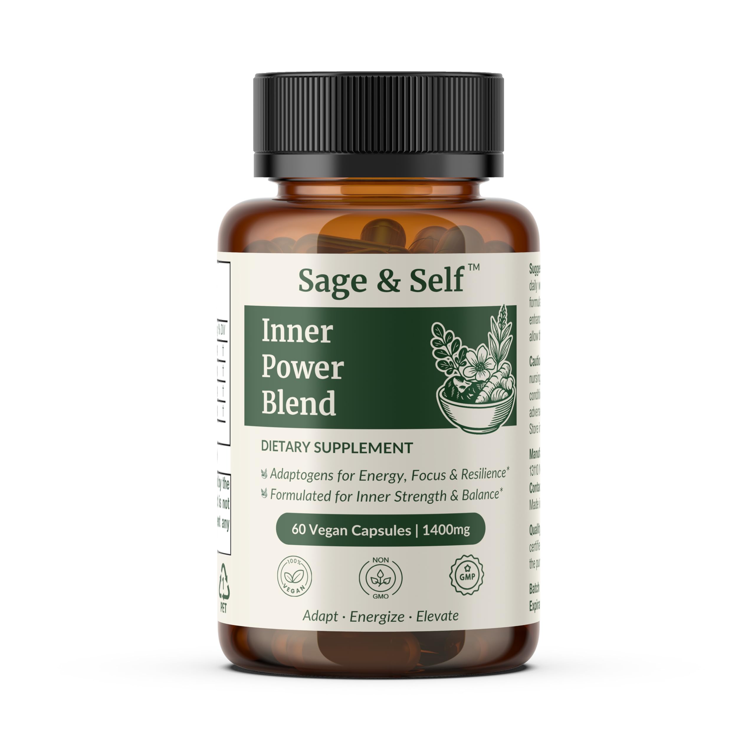 Sage & Self Inner Power Capsules Adaptogen Blend with Ashwagandha Shilajit Rhodiola & Black Pepper Supports Energy Resilience & Mental Clarity 1400 mg per Serving 60 Vegan Capsules