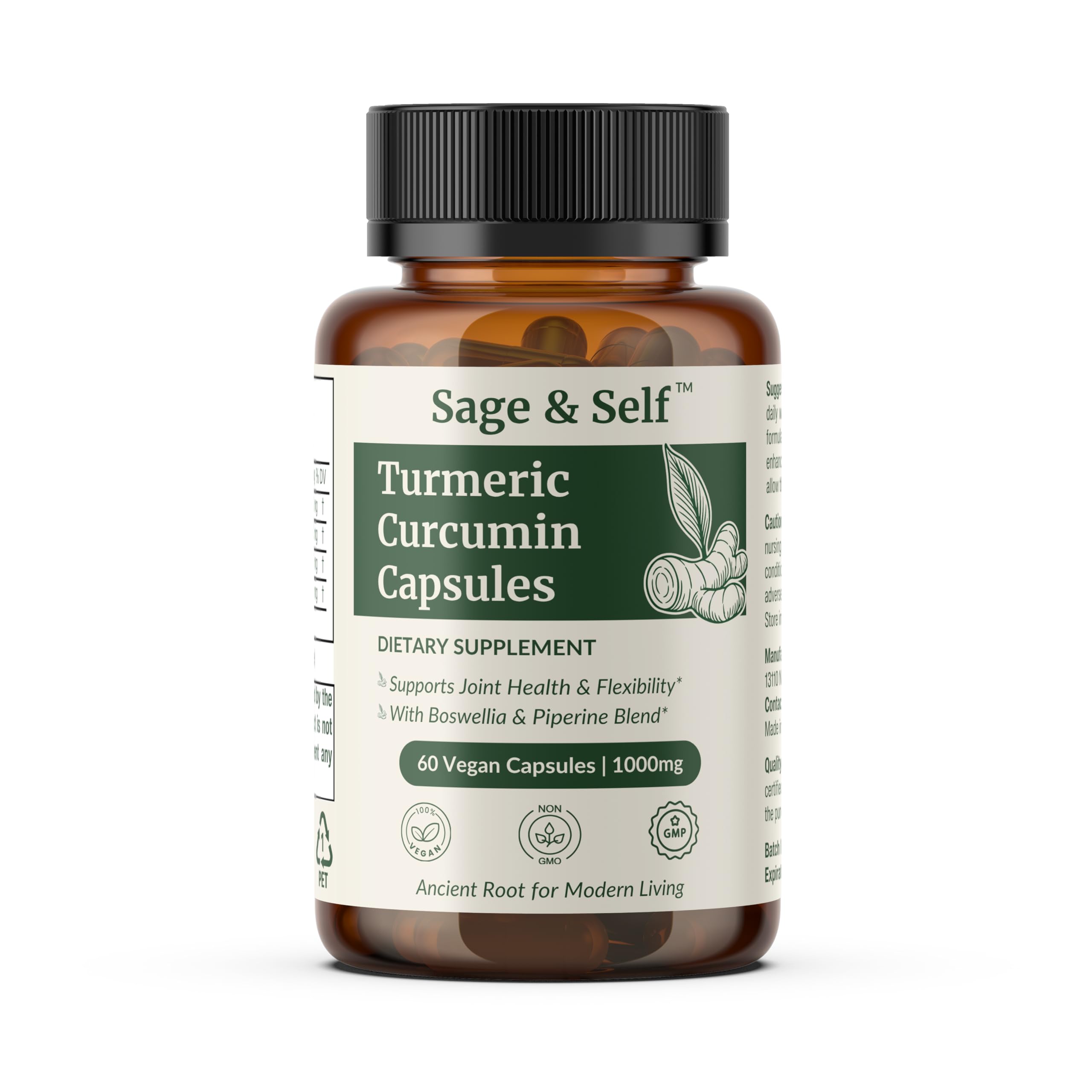 Sage & Self Turmeric Curcumin Capsules 95% Curcumin Extract with Ginger Boswellia & Black Pepper 1000 mg Per Serving Vegan Herbal Supplement (60 Capsules)