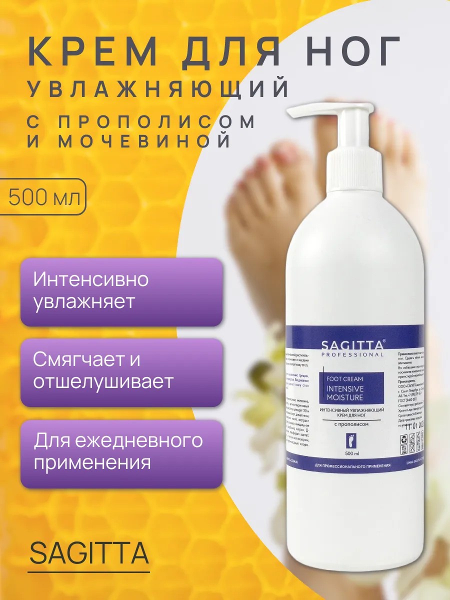 Sagitta Интенсивный увлажняющий крем для ног с прополисом 500 мл
