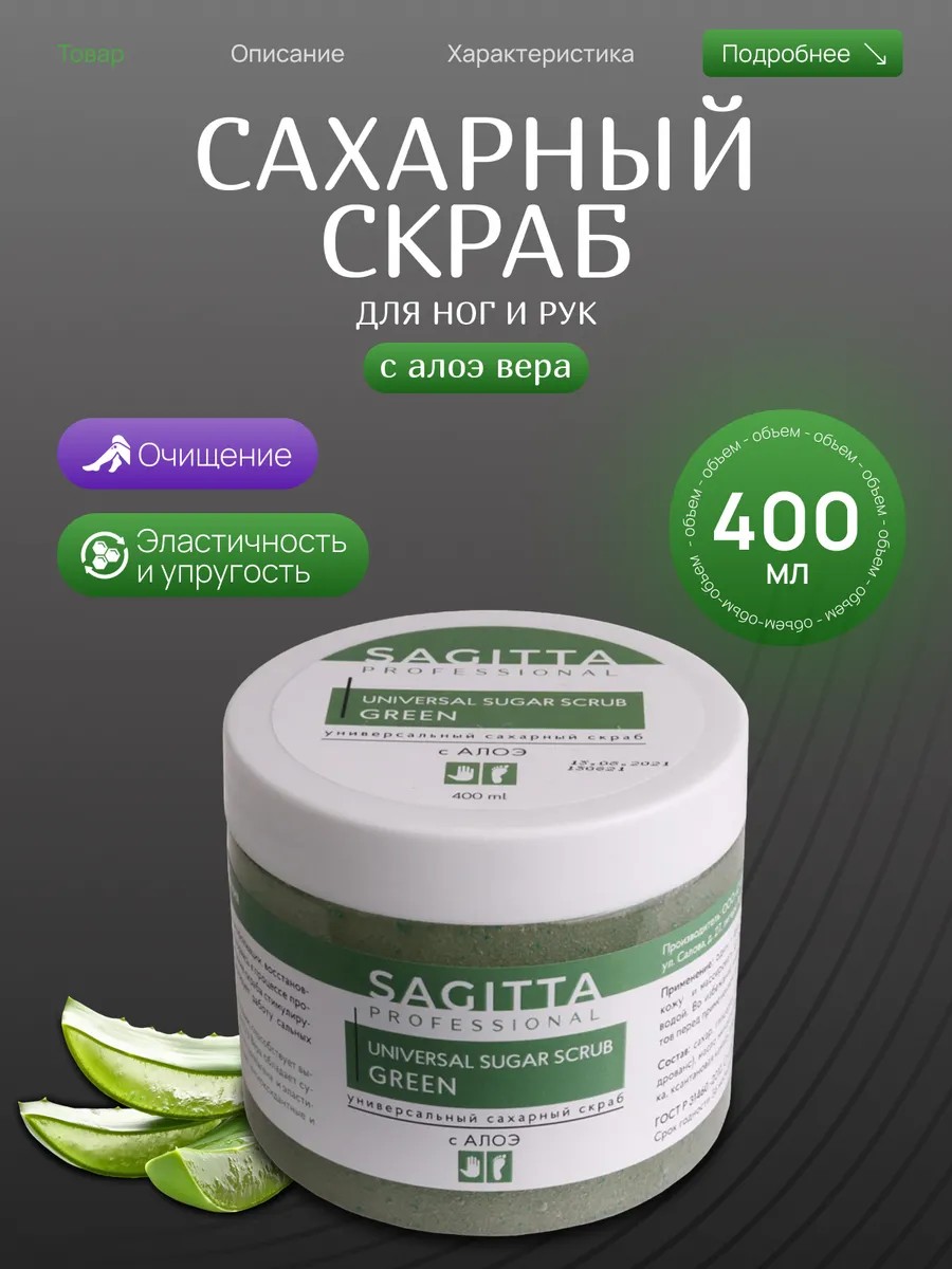 Универсальный сахарный скраб с АЛОЭ предназначен для очищения, мягкойэксфолиации, восстановления эластичности и упругости кожи. Подходит длялюбого типа кожи. Растворяясь в процессе процедуры, сахар обеспечивает мягкийи деликатный пилинг. Регулярное применение скраба стимулируетмикроциркуляцию, улучшает питание тканей и ее регенерацию. Нормализуетработу сальных желез, очищает поры. Гликолевая кислота, находящаяся в сахаре,обладает антиоксидантными свойствами, способствует выведению токсинов,защищает от агрессивного влияния окружающей среды. АЛОЭ Вера обладаетсуперувлажняющими и влагоудерживающими свойствами, способствуетвыработке коллагенов и эластина, дает сильный заживляющий эффект иобеспечивает противовоспалительные, антиоксидантные и антибактериальныесвойства скраба.Применение: один-два раза в неделю нанести скраб на влажную кожу имассировать до растворения сахарных кристаллов. Смыть водой во избежаниеиндивидуальной непереносимости компонентов перед применениемпротестируйте на небольшом участке кожи.Приготовься к моментам истинного расслабления и ухода за своей кожей с помощью сахарного скраба с Алоэ SAGITTA. Это удивительное средство косметики идеально подходит для ухода за кожей тела и лица. Насладись полными спа-процедурами в комфорте своей ванны или в душе, позволяя этому уходовому средству проникнуть в каждый уголок твоей кожи и дарить неповторимое ощущение гладкости и мягкости. Сахарный скраб с Алоэ SAGITTA – это профессиональный продукт для ухода за кожей, созданный для женщин, которые ценят натуральность и косметику высокого качества. Нежные сахарные частицы деликатно отшелушивают и очищают кожу, удаляя ороговевшие клетки и эффективно борясь с несовершенствами. Забудь о проблемных участках и вросших волосках! Очищение и пилинг работают на благо твоей кожи, оставляя ее гладкой и мягкой, словно после посещения спа-салона. Баночка сахарного скраба с Алоэ – это удивительный подарок, который придется по вкусу каждой женщине. Аромат са