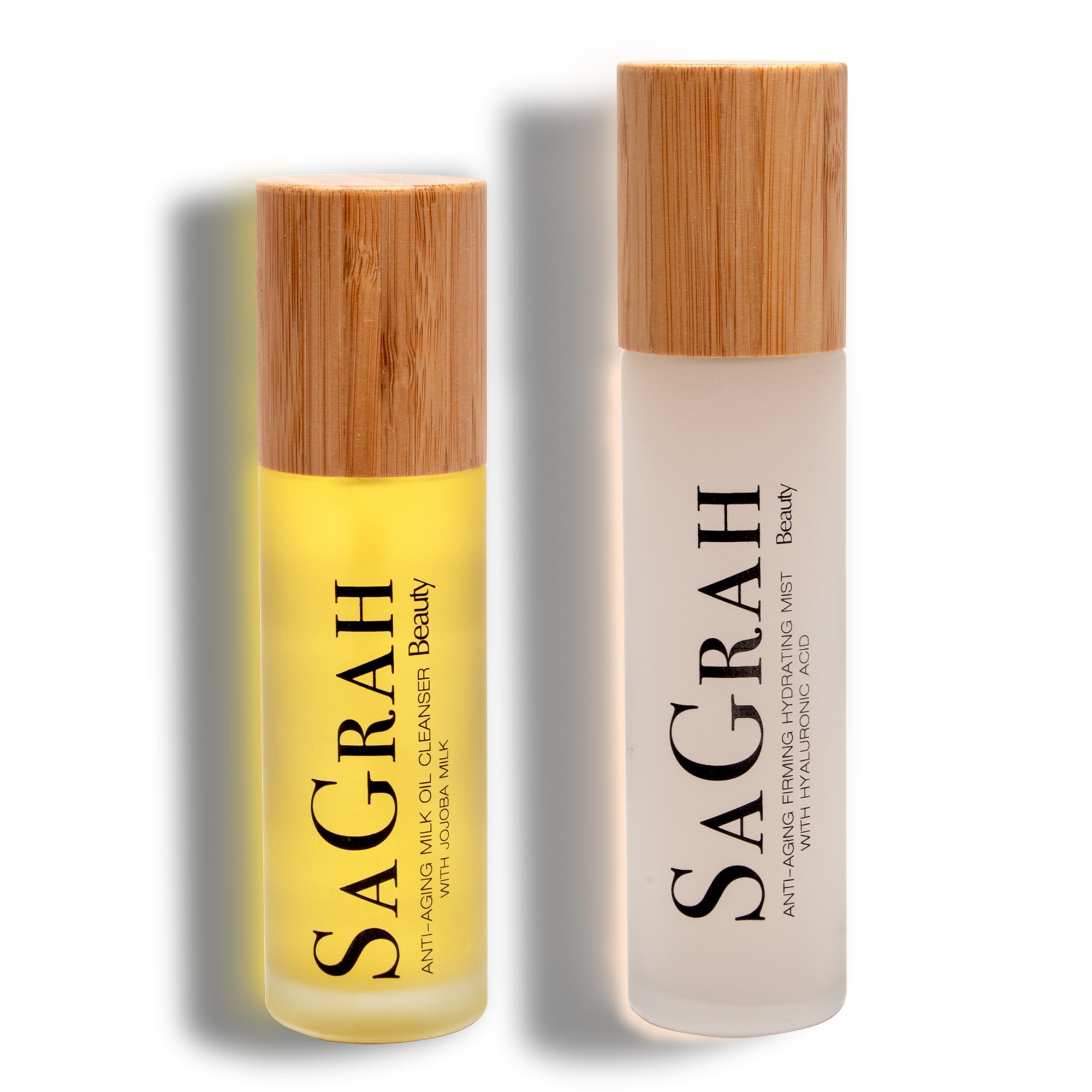 SaGrah Beauty Anti-Aging Oil Cleanser with Jojoba Milk and Hydrating Mist Duo - Cruelty-Free Gentle Hydrating Facial Cleanser and Refreshing Spray for All Skin Types