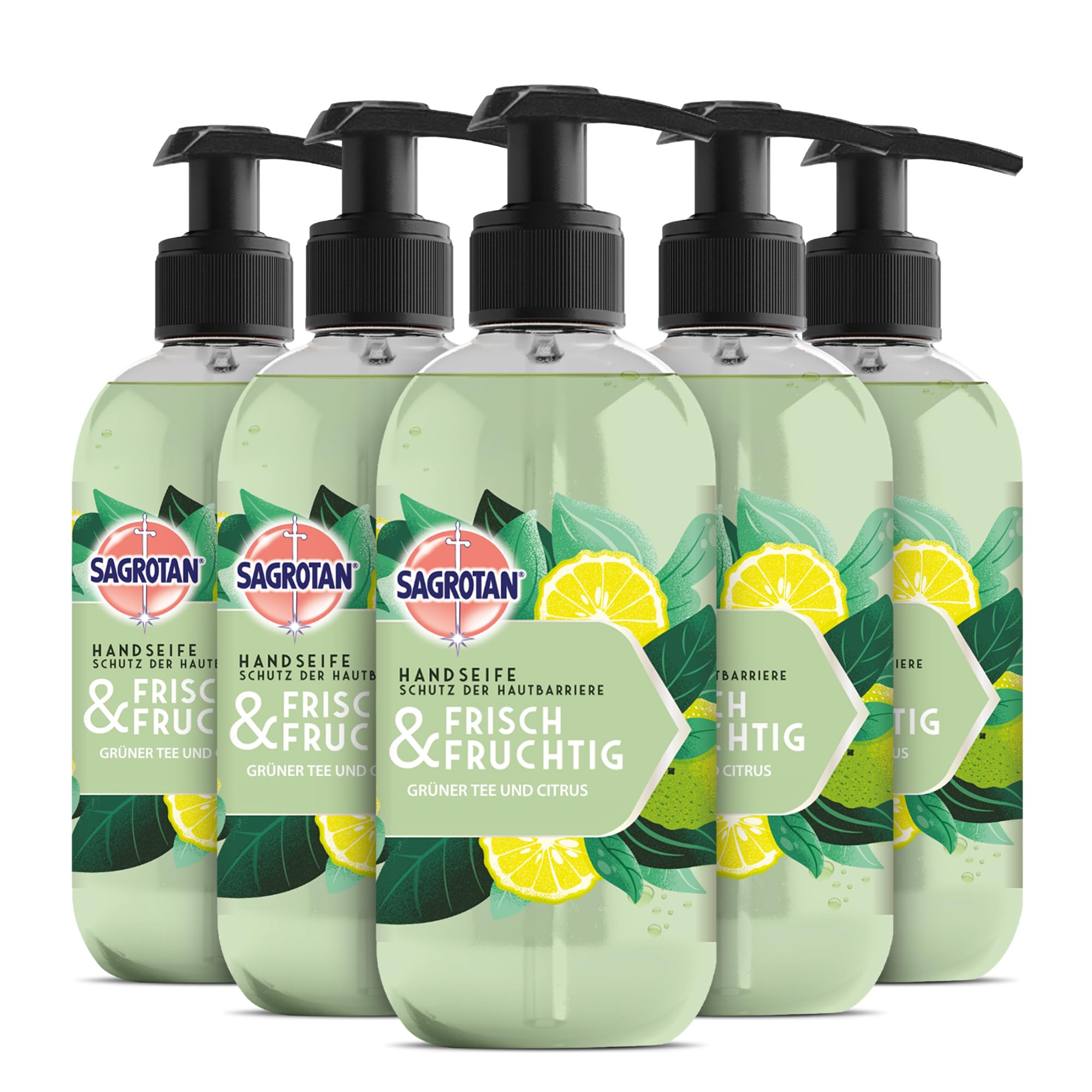 Sagrotan Fresh and Fruity Hand Soap Sagrotan liquid soap is gentle on the skin. The skin-care formula with moisturizing ingredients offers a successful combination of daily care and protection. It leaves skin feeling soft and cleanses hygienically. Sagrotan soap moisturizes and leaves a wonderful fragrance. Skin tolerance is dermatologically tested. The range offers a wide variety. and always the assurance that your hands are hygienic. Ingredients: Aqua, Sodium Laureth Sulfate, Glycerin, Cocamidopropyl Betaine, Sodium Chloride, Lactic Acid, Citric Acid, Sodium Benzoate, Sodium Hydroxide, Parfum, Tetrasodium EDTA, Hexyl Cinnamal, Limonene, Citral, Linalool, Geraniol, Citronellol, Sodium Ferrocyanide, CI 61570, CI 19140, CI 15510. Contains lactic acid and glycerin. Safety Information: For external use only. Keep out of reach of children. Not suitable for: Use on children under 2 years of age. Avoid contact with eyes. In case of contact with eyes, rinse immediately with plenty of water. If contact occurs, consult a doctor. INGREDIENTS Aqua, Sodium Laureth Sulfate, Glycerin, Cocamidopropyl Betaine, Sodium Chloride, Lactic Acid, Citric Acid, Sodium Benzoate, Sodium Hydroxide, Parfum, Tetrasodium EDTA, Hexyl Cinnamal, Limonene, Citral, Linalool, Geraniol, Citronellol, Sodium Ferrocyanide, CI 61570, CI 1919191, CI 40, CI 15510 SAFETY WARNING Not applicable See moreTogether against ocean plastic: With every purchase, you help us collect a total of 5 million plastic bottles from the environment (when sold by Pennguin, 1 bottle 20g of plastic waste). Contents: 5 x 300ml Sagrotan Fresh Fruity Hand Soap moisturizing and gentle on skin. Proven cleanliness: For over 110 years, Sagrotan has ensured hygienic cleanliness at home. Dermatologically tested: Skin tolerance is dermatologically tested. The perfect fragrance experience: The liquid soap pampers with a fresh, fruity scent of green tea and citrus and gently cleanses even sensitive skin. CARE PROTECTION: The formula with moisturizing ingredients offers an ideal combination of reliable daily care and protection. Contains lactic acid and glycerin.Sagrotan Savon pour les mains frais et fruité - Savon liquide hydratant au parfum fruité - 5 x 300 ml Savon pour les mainsDESCRIPTION DU PRODUIT DESCRIPTION DU PRODUIT Sagrotan Savon pour les mains frais et fruité Le savon liquide Sagrotan est doux pour la peau. La formule de soin de la peau avec des ingrédients hydratants offre une combinaison réussie de soin et de protection quotidienne. Il laisse une sensation de douceur sur la peau et nettoie de manière hygiénique. Savon Sagrotan Hydrate et dégage un parfum merveilleux. La tolérance cutanée est testée dermatologiquement. La gamme offre une grande variété. et toujours la sécurité que vos mains sont hygiéniques. Ingrédients : Aqua, Sodium Laureth Sulfate, Glycerin, Cocamidopropyl Betaine, Sodium Chloride, Lactic Acid, Citric Acid, Sodium Benzoate, Sodium Hydroxide, Parfum, Tetrasodium EDTA, Hexyl Cinnamal, Limonene, Citral, Linalool, Geraniol, Citronellol, Sodium Ferrocyanide, CI 61570, CI 19140, CI 15510. Contient de l'acide lactique et de la glycérine. Informations de sécurité : Pour un usage externe uniquement. Conserver hors de portée des enfants, hors de la portée des enfants. Ne convient pas pour : À utiliser chez les enfants de moins de 2 ans. Évitez tout contact avec les yeux. En cas de contact avec les yeux, rincer immédiatement avec beaucoup d'eau. En cas de riz. consulter un médecin. INGRÉDIENTS Aqua, Sodium Laureth Sulfate, Glycerin, Cocamidopropyl Betaine, Sodium Chloride, Lactic Acid, Citric Acid, Sodium Benzoate, Sodium Hydroxide, Parfum, Tetrasodium EDTA, Hexyl Cinnamal, Limonene, Citral, Linalool, Geraniol, Citronellol, Sodium Ferrocyanide, CI 61570, CI 1919191. 40, CI 1 5510 AVERTISSEMENT DE SÉCURITÉ Ne s'applique pas Voir plusEn commun contre le plastique dans l'océan : avec chaque achat, vous nous aidez à collecter un total de 5 millions de bouteilles en plastique issues de l'environnement (lors de la vente par Pennguin 1 bouteille 20 g de déchets plastiques) ?. Contenu de la livraison : 5 x 300 ml de savon pour les mains frais et fruité de Sagrotan hydratant et doux pour la peau. Propreté prouvée : depuis plus de 110 ans, Sagrotan assure une propreté hygiénique à la maison. Testé sous contrôle dermatologique : la tolérance cutanée est testée dermatologiquement. L'expérience parfumée idéale : le savon liquide dorlote avec un parfum frais et fruité de thé vert et d'agrumes et nettoie même en douceur les peaux sensibles. SOIN ET PROTECTION : la formule aux ingrédients hydratants offre une combinaison idéale de soin et de protection quotidienne fiable Contient de l'acide lactique et de la glycérine.