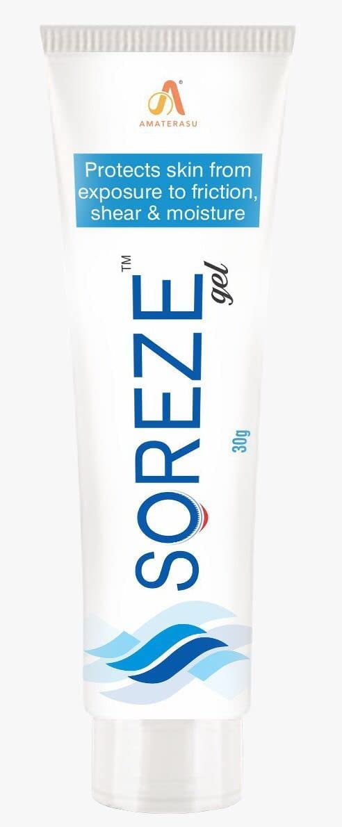 Soreze Gel is India's first silicone-based skin care product for prevention of bedsores also known as pressure ulcers or pressure sores. Soreze prevents bed sores and eases lives of patients and their care givers. Within few seconds of application Soreze, it starts action by forming a thin, long-lasting, water repellent, breathable, protective barrier film on skin that reduces friction and makes skin smooth. Soreze protects skin exposed to irritation from moisture such as sweat, urine, faecal matter. It helps relieve skin irritation or redness in pressure prone areas and prevents it from developing into bedsores. Soreze should be used along with an air mattress or water beds or other bed sore prevention techniques for complete protection and relief from bedsores.Dermatologically tested and found safe for daily use. No harmful chemicals, dyes, colours, preservatives or animal origin substances used. Starts action within 30 seconds of application and lasts for more than 8 hours. Inhibits direct contact of skin with clothing, bedding or any harmful body fluids thus relieves skin irritation or redness on pressure prone areas and prevents it from developing into bed sore. Prevents bedsores or pressure sores by protecting skin from exposure to friction, shear moisture by forming water repellent, friction lowering, protective barrier film.