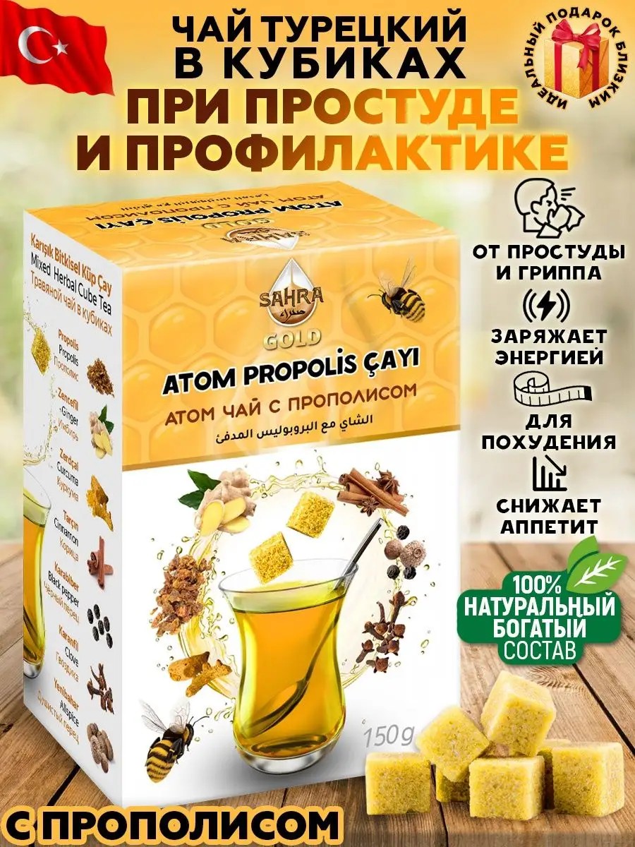 Try our Sultan Tea from Turkey and immerse yourself in the world of the East! Tags: ATOM tea, atom tea, Atom Çayı, Tea in cubes, Winter tea for colds, Atomic Turkish tea in cubes, natural, instant tea with eucalyptus, menthol, herbal tea for weight loss, with cinnamon, ginger, cloves, propolis, Ziya Dede, sahra gold, tea for bronchitis