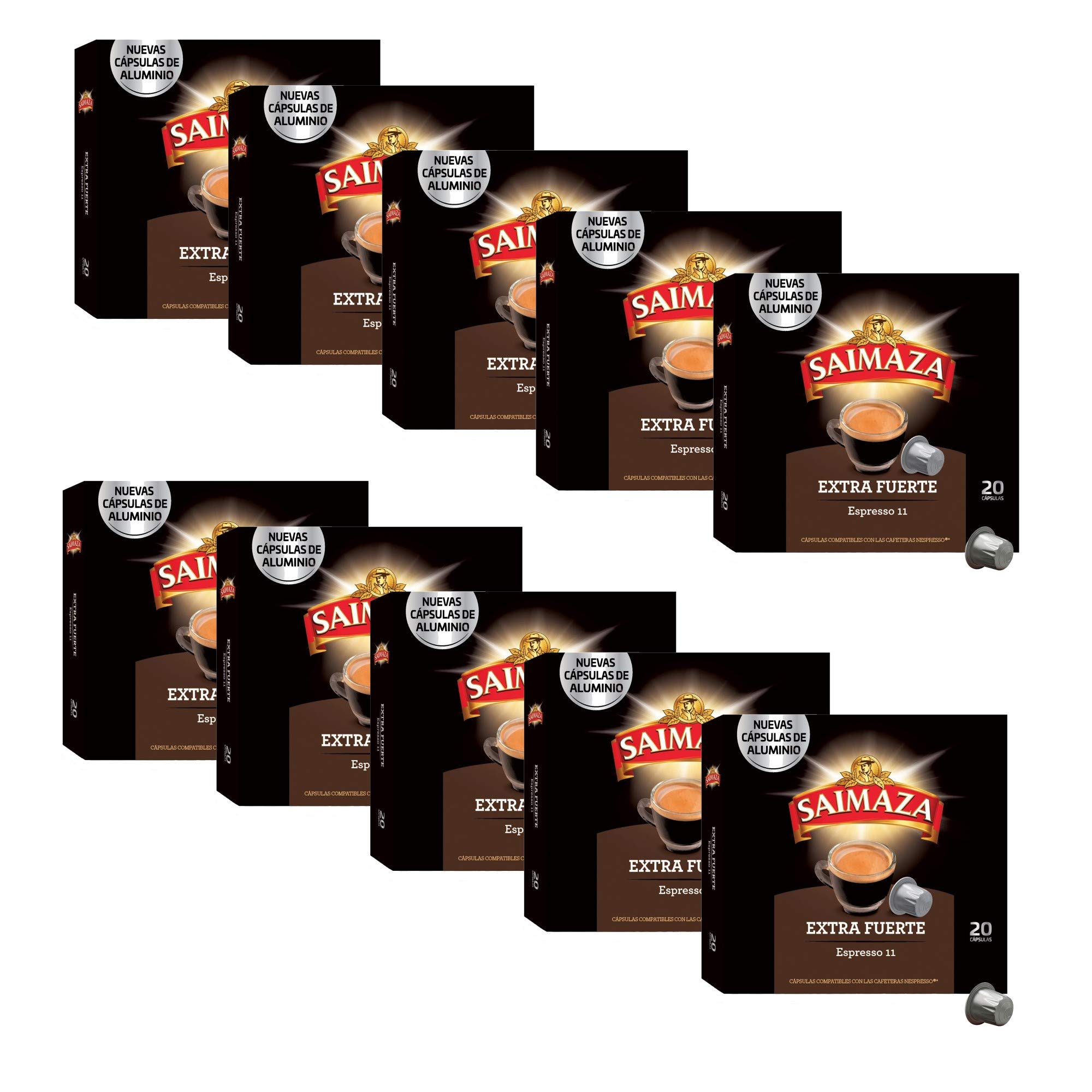 Saimaza Espresso 10 Extra Fuerte - Capsules de caf en aluminium compatibles avec Nespresso * - 10 Paquets (200 Boissons)