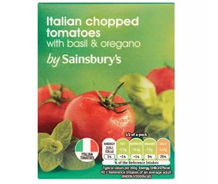 Sainsbury's Tomates hachées avec basilic et origan 390 g – Tomates hachées dans du jus de tomate avec du basilic et de l'origan.