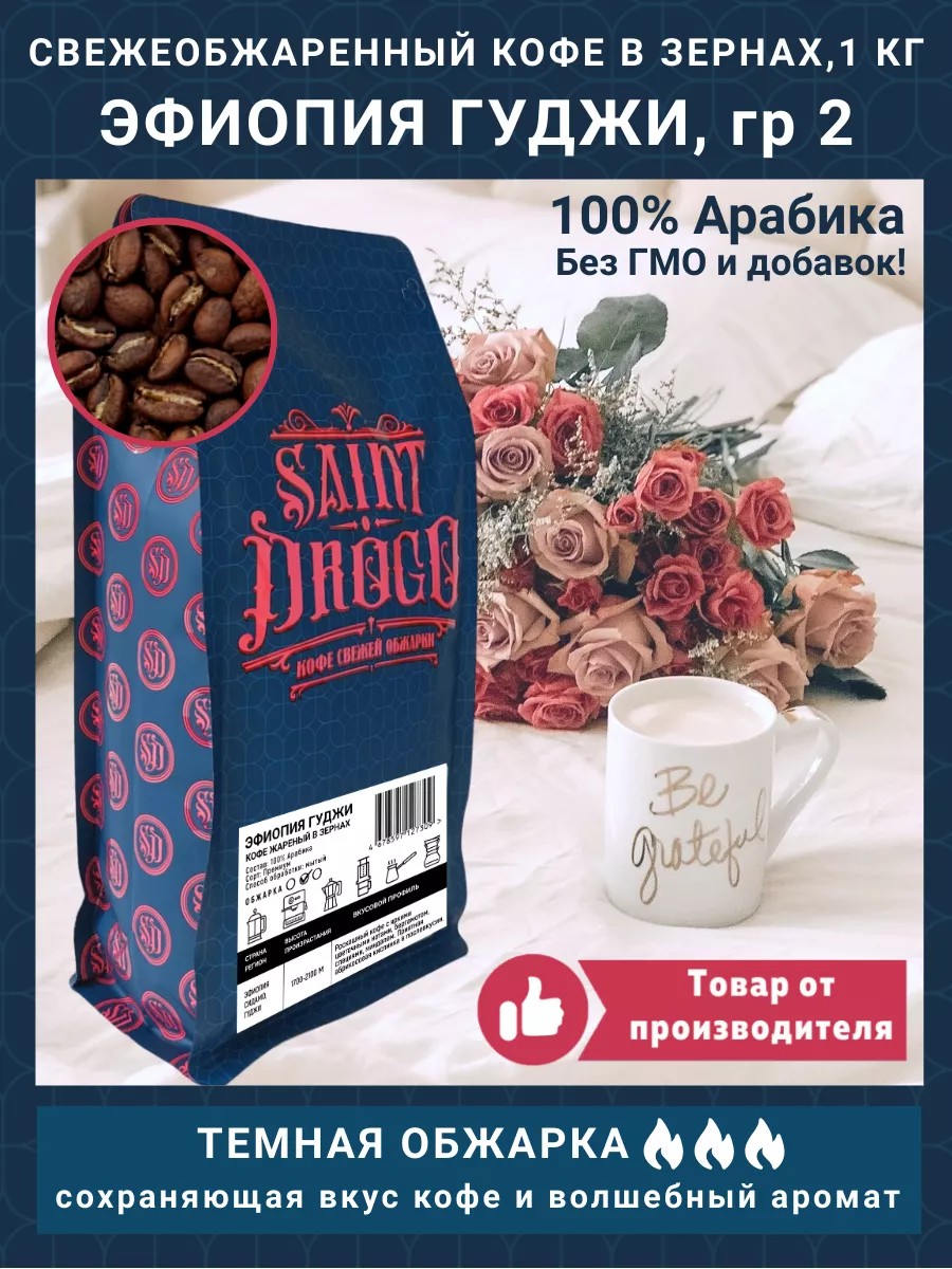 Святой Дрого Кофе в зернах Эфиопия Гуджи, 1 кг