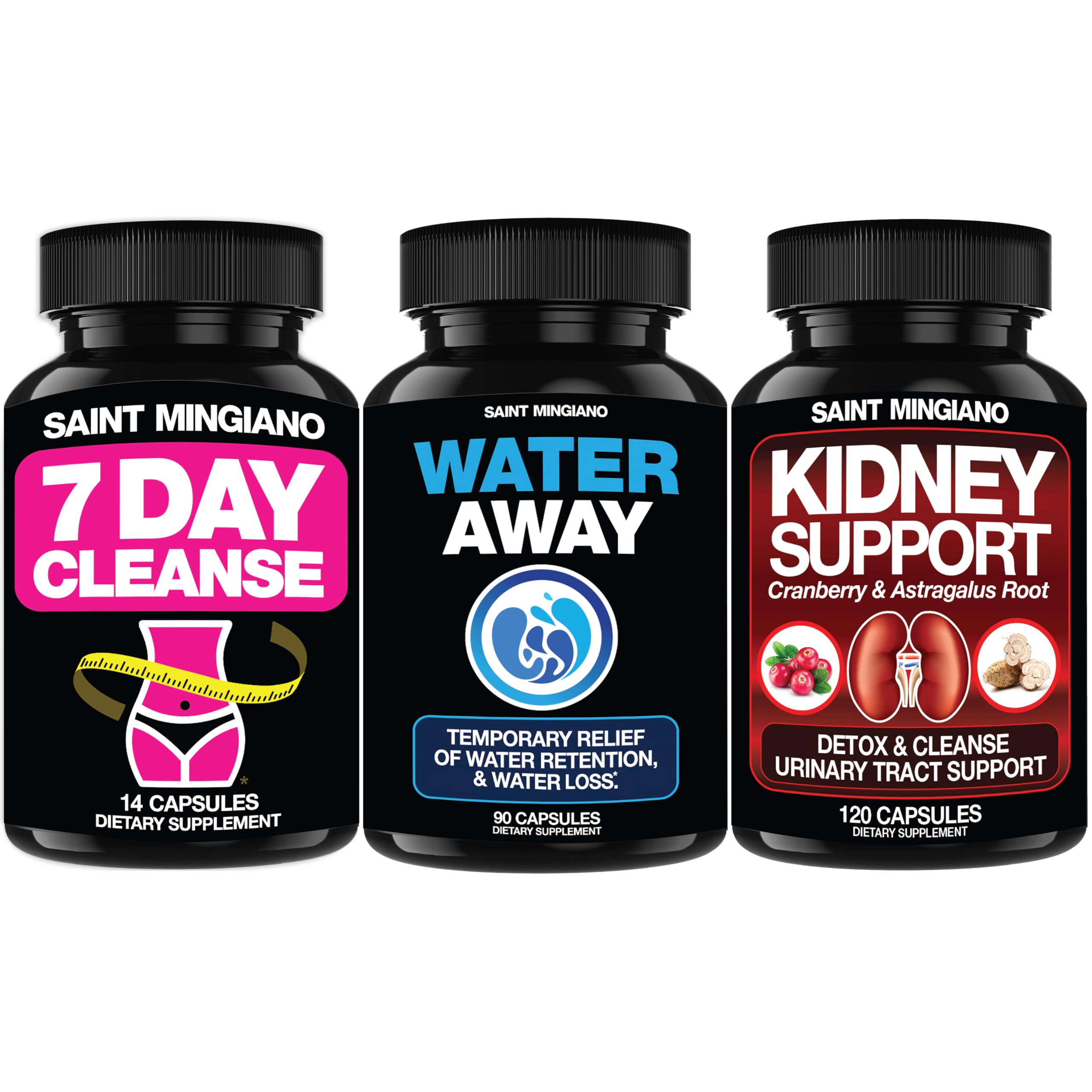 Saint Mingiano 7-Day Colon Cleanse + Water Away + Kidney Detox Triple Action Bloat Relief & Cleanse Support