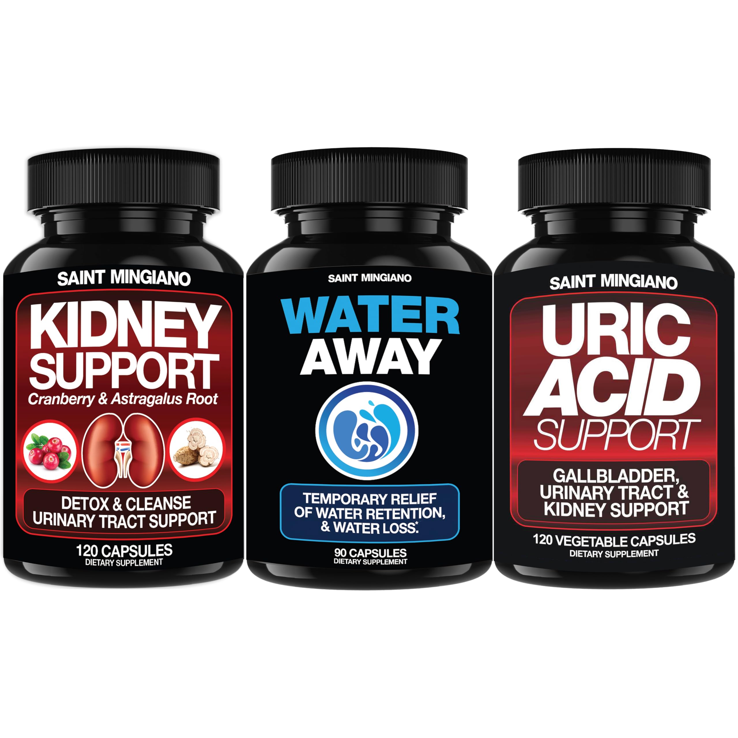 Saint Mingiano Kidney Cleanse + Water Retention Flush + Uric Acid Support 3-in-1 Detox & Bloat Relief Bundle Herbal Support for Kidney Health Fluid Balance & Joint Comfort