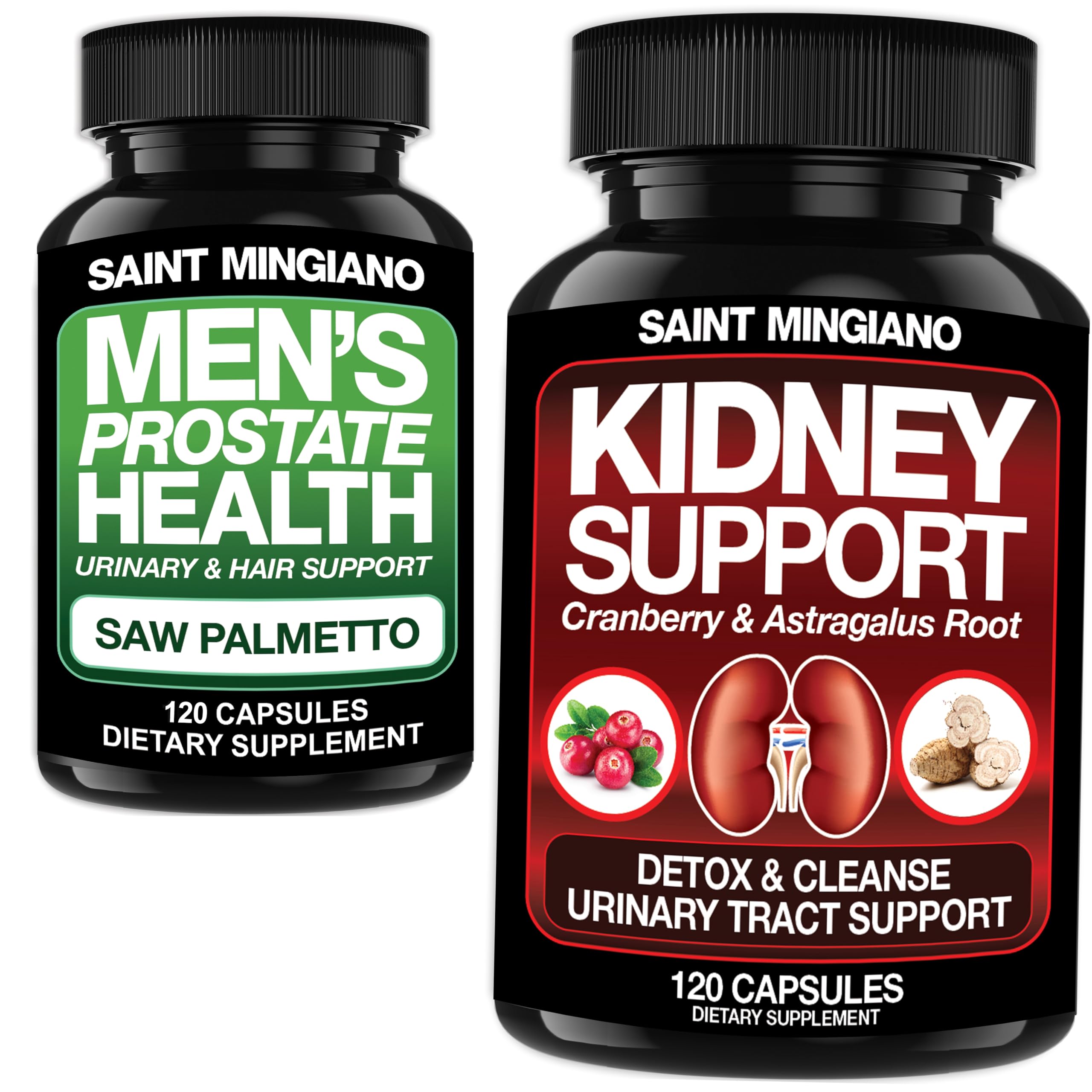 Saint Mingiano Kidney Support Cleanse Detox & Repair 120 Casuals - Together with - Men's Prostate Health Advanced Prostate Supplements - 120 Capsules