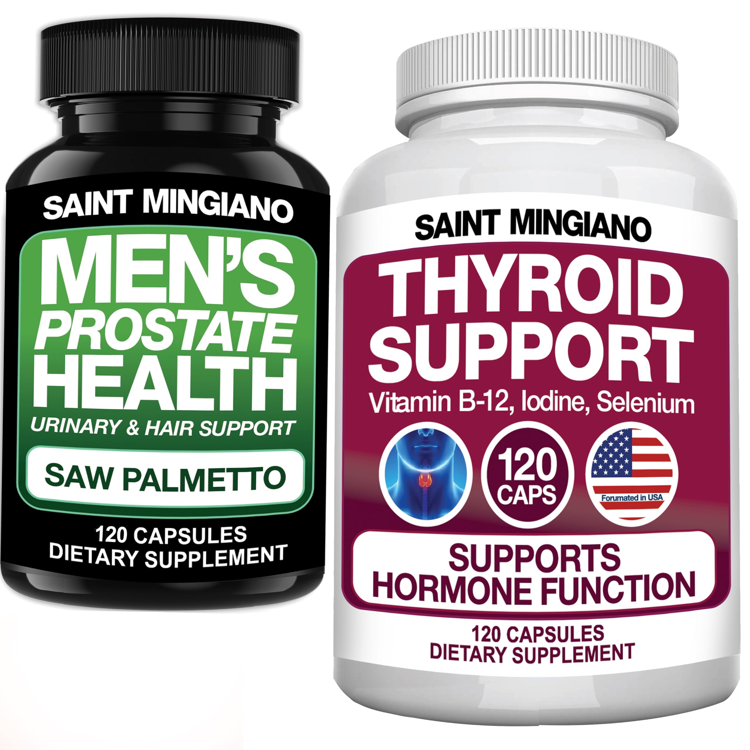Saint Mingiano Thyroid Support Supplement 120 Capsules - with - Men's Prostate Health Supplement - 120 Capsules