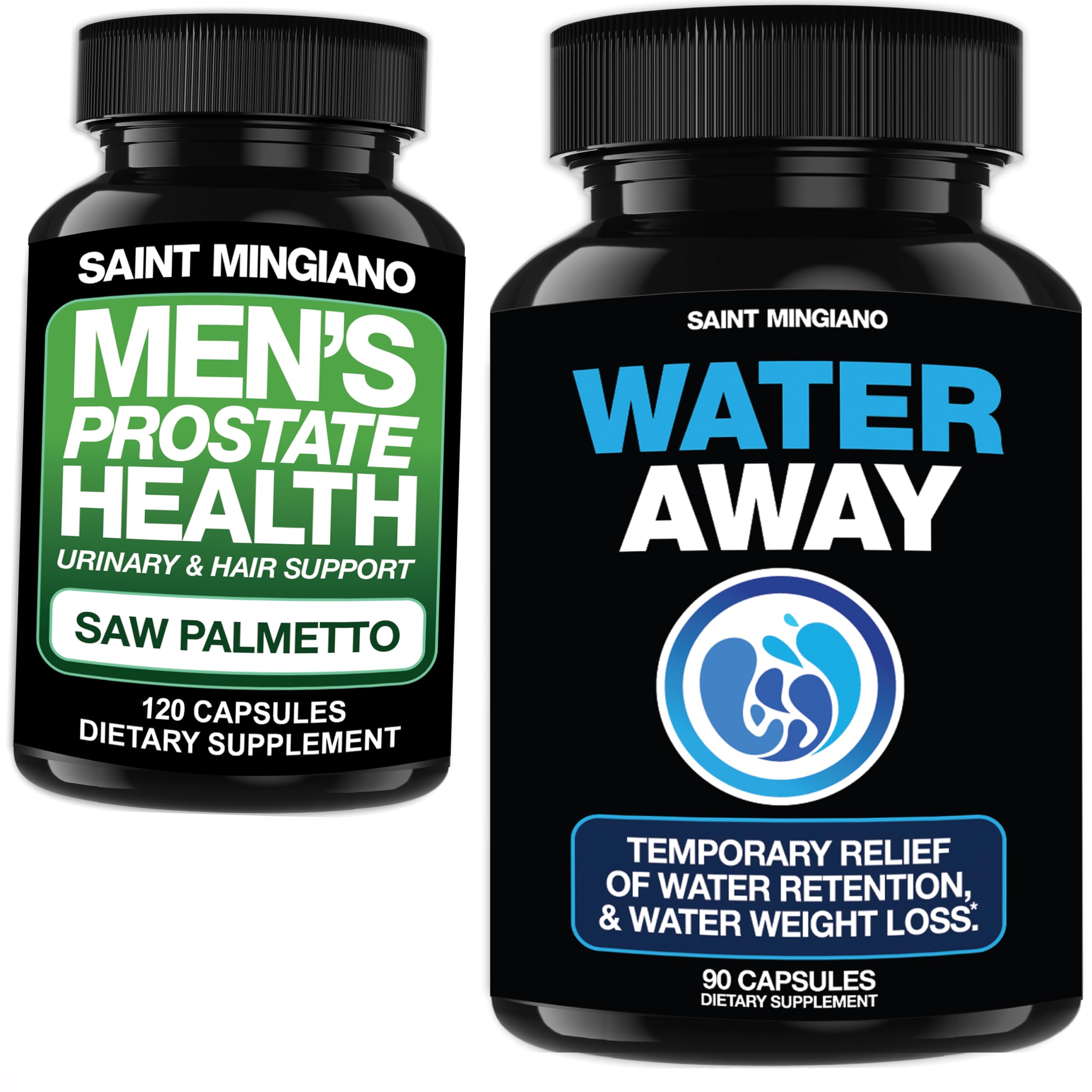 PROSTATE HEALTH YOU CAN TRUST - With Saint Mingiano's extra strength prostate supplement, developed from natural ingredients, the strength of whole berries NATURALLY promotes the urinary function of your prostate health. Taken daily, this PREMIUM SAW PALMETTO formula will aid the restoration of your well-being and vitality. SAW PALMETTO SUPPLEMENTS - Frequent urination is common as men age from within their 30's, but this should not interfere with your daily activities, especially when you are trying to getting a good nights rest. Put an end to your frustrations, with SAINT MINGIANO's extra strength prostate and urinary balance supplement. Comprehensive Body Support - Experience the distinct advantages of our popular Water Away Pills, which provides multiple benefits including support for the Kidneys, improved Urinary Tract Health and Gallbladder for both women and men, while reducing bloating throughout the body. Mild yet Powerful - Each of these Water Away Pills for men and women is infused with a 12 specifically formulated ingredients to act as a natural diuretic designed for effective relief from water retention. Experience quick-acting benefits that promote better fluid balance and enhanced energy levels.