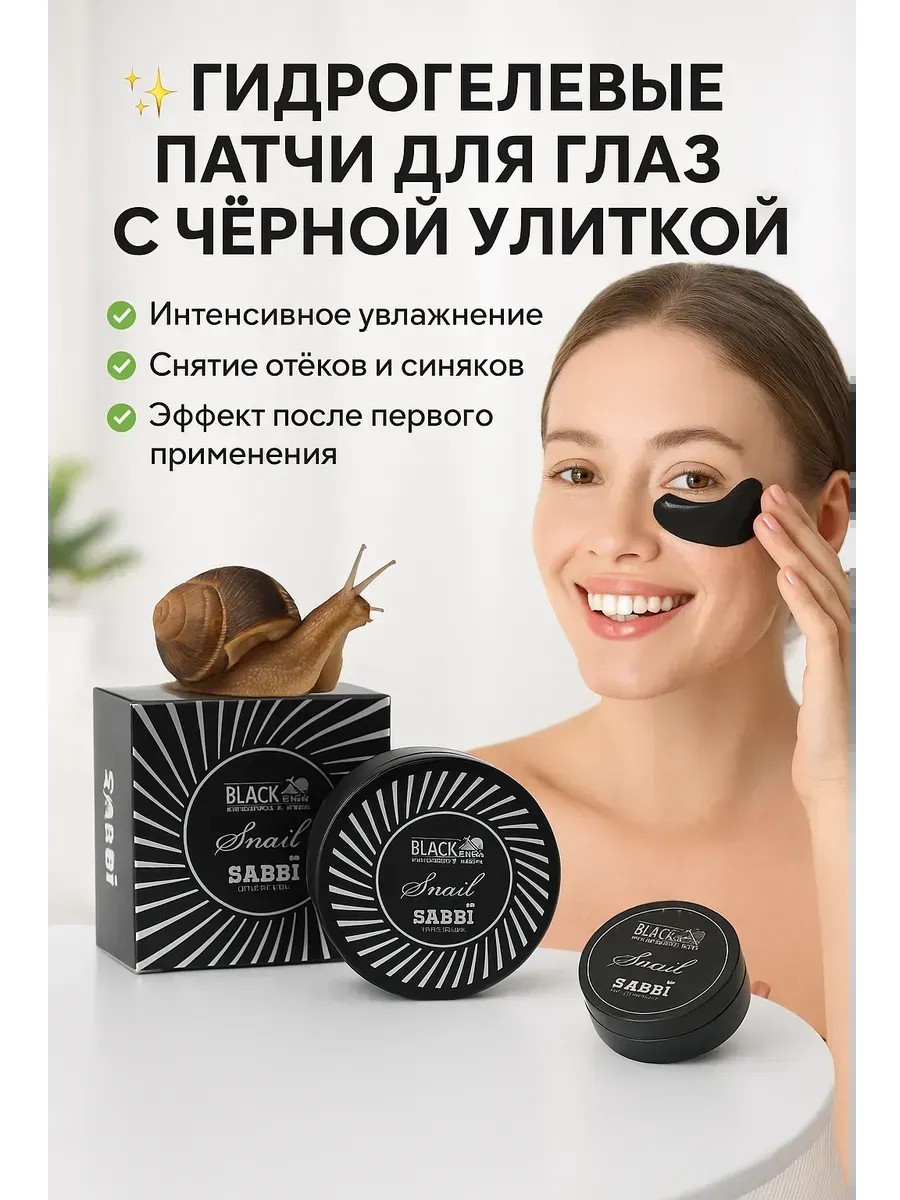 Отличный подарок для себя или на день рождения близкой!Гидрогелевые патчи для глаз с муцином чёрной улитки SABBÍ Black Snail, 60 шт
