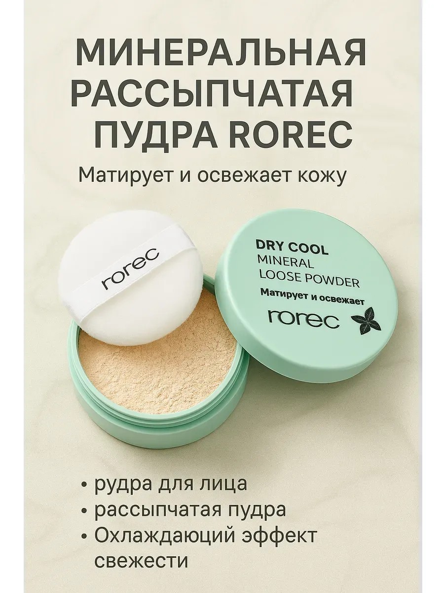 | Полное наименование товара | Минеральная рассыпчатая пудра Rorec Dry Cool Mineral Loose Powder |