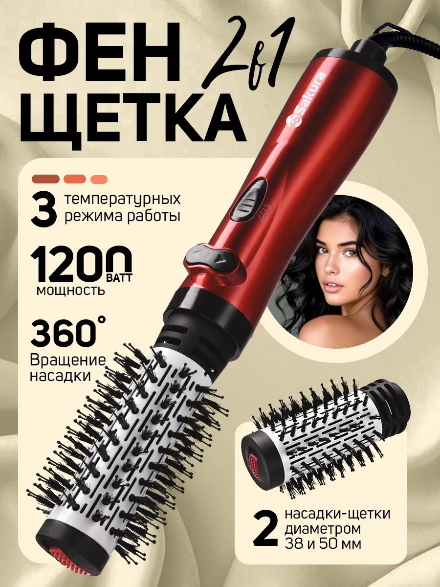 The Sakura SA-4205R brush features 3 temperature settings, 2 attachments, and a 1200W power output, making it an indispensable assistant in creating hairstyles for any occasion: whether it's everyday styling or preparing for a special event.