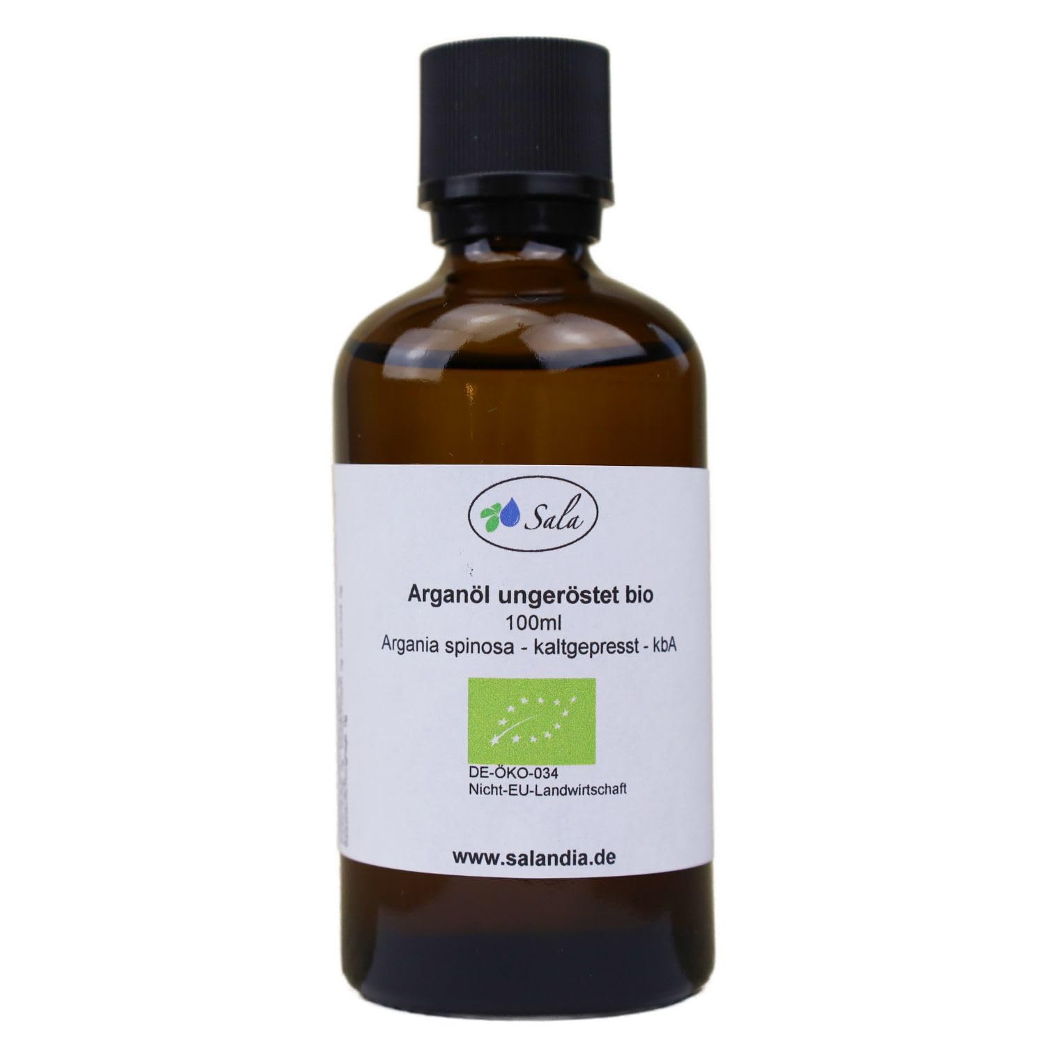Sala Huile d'argan pressée à froid non torréfiée de qualité alimentaire bio (bouteille en verre de 100 ml)