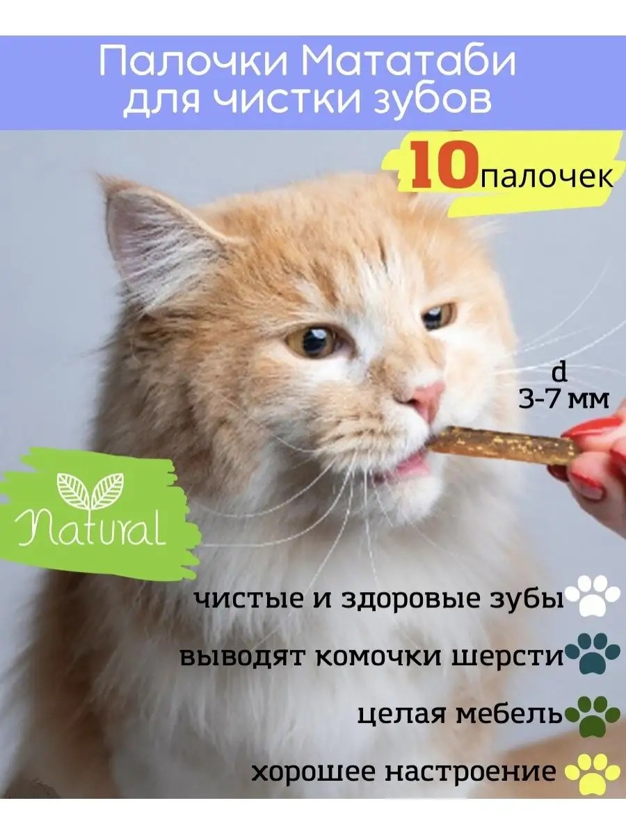 Мататаби для кошек с эффектом кошачьей мяты- средство-антистресс и палочка для чистки зубов кошек. МАТАТАБИ - это растение Актинидия полигамия, произрастающее в горных районах Японии и Китая. Палочка мататаби благотворно влияет на кошку, снимает стресс, расслабляет и вызывает желание поиграть и понежиться. Игрушки для кошек мататаби вызывают у кошек продолжительный интерес. Они подкидывают игрушки вверх, гоняют и активно играют, а потом кошка чувствует небольшую сонливость и идет отдыхать. Деревянные палочки можно использовать, если кошка испытывает стресс, находится в депрессии или разлуке с хозяином. Помогает при недостаточном аппетите, уменьшает повышенную эмоциональную активность, палочки мататаби можно давать кошкам три раза в неделю по 15 минут. Изгрызенную часть лакомства лучше отделить кусачками и выбросить. В этом случае лакомство для кошек будет действовать на кошку дольше и эффективнее. Лакомтсво подходит для кастрированных котов и стерилизованных кошек, а также всех пород кошек.