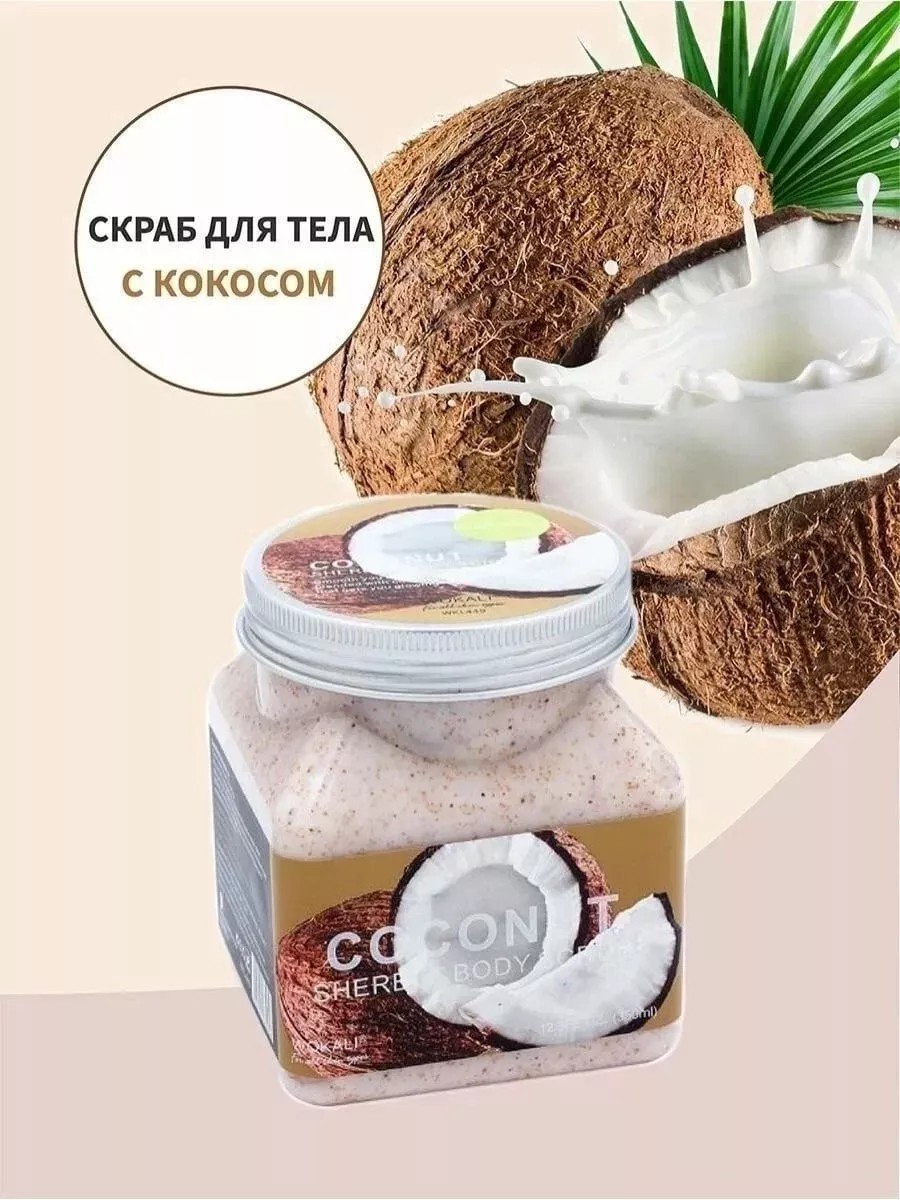 Скраб для тела Wokali Coconut Sherbet Body Scrub - эффективное средство для ухода за чувствительной кожей. Он деликатно удаляет ороговевшие частицы, смягчает и убирает раздражения. Основные действующие компоненты: Экстракт кокоса восстанавливает и успокаивает кожу. Экстракт ромашки обладает выраженным противовоспалительным эффектом, нормализует секрецию сальных желез. Скраб для тела Sherbet помогает очистить поры и аккуратно удалить угри и омертвевшие клетки, обновит кожу и предотвратит появление целлюлита, подтянет и увлажнит. Полезные эфирные масла выводят токсины из клеток вашей кожи. Скраб обладает качественным отшелушивающим действием и позволяет выравнивать рельеф. Увлажняющий эффект данного скраба очень высок, а абразивное воздействие морской соли обновляет верхний эпителий и позволяет коже оставаться юной дольше. В состав входит кокос, который не только бережно удалит ороговевшие клетки, но хорошо увлажнит кожу, напитает полезными элементами, защитит от ультрафиолета, вернет утраченное сияние. Морская соль усиливает кровоток и регенерацию тканей, предупреждает появление прыщей. Ромашка сужает поры и нормализует секрецию сала, дезинфицирует, успокаивает, отбеливает. Дробленая скорлупа грецкого ореха эффективно счищает отмершие клетки, убирает грязь, пыль, освобождает от токсинов и шлаков. Масло ши восстанавливает, питает, омолаживает, устраняет ощущение стянутости. Способ применения: Нанесите небольшое количество скраба на влажную кожу и помассируйте в течение 2-3 минут. После этого смойте средство теплой водой. Проблемные зоны можно промассировать дважды. Для закрепления эффекта воспользуйтесь кремом. Пилинг нужно делать 2-3 раза в неделю. Меры предосторожности: Перед тем, как использовать средство, необходимо оценить совместимость вашей кожи с компонентами, которые есть в его составе. Если появились покраснения, шелушения или другая нежелательная реакция, следует отказаться от дальнейшего использования.