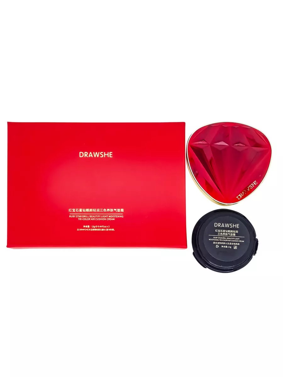 DRAWSHE бриллиантовый кушон — уникальный косметический продукт, который помогает быстро скрыть мелкие несовершенства кожи и создать безупречный оттенок. Тональный крем-кушон ложится тончайшим невесомым слоем, подстраивается под исходный оттенок кожи, обеспечивает ощущение лёгкости и комфорта в макияже весь день.Кушон объединил в себе достоинства: консилер, BB-крем, тональный крем, пудру, базу под макияж. Кушон обладает маскирующим средством. Маскирует черные точки, акне, скрывает темные круги под глазами, морщины, покраснения, пигментацию, а также другие несовершенства. Тональная основа не только маскирует несовершенства, но и увлажняет и питает кожу при этом не оставляет блеска.ВВ крем подстраивается под тон вашей кожи. Крем для лица можно использовать как базу под макияж. Кушон водостойкий и воздухопроницаемый (не забивает поры). Не создает ощущение маски для лица. Подходит для всех типов кожи: сухой, жирной комбинированной. Для равномерного нанесения в комплекте идет мягкий спонж. Обладает повышенной стойкостью. Увлажняет и защищает кожу на протяжении целого дня. Предотвращает сухость и шелушение. Благодаря легкой текстуре и продуманному способу нанесения тон:• не потечет• не скатается• не забьется в поры.