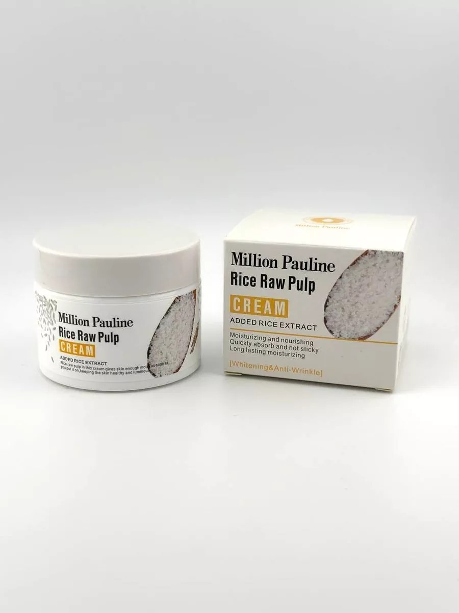 PAULINE Rice Raw Pulp Brightening face cream with rice extract Rice Raw Pulp Cream makes the skin soft and velvety, instantly saturates cells with moisture, eliminates dryness and flaking. Luxurious care for your skin - moisturizing anti-aging cream for face and hands! Immerse yourself in a world of luxurious care for your skin with our high-quality face and hand creams. Our moisturizing anti-aging cream will become your reliable partner in the fight against the signs of aging and will provide intensive hydration for your skin. Face cream "Million Pauline Rice Raw Pulp" is a skin care product that contains rice extract and other active ingredients. It is designed to moisturize and nourish the skin, as well as to improve its texture and tone. The cream can help make the skin softer and smoother, and also reduce the appearance of wrinkles and other signs of aging. It can be used as a morning or evening facial skin care.