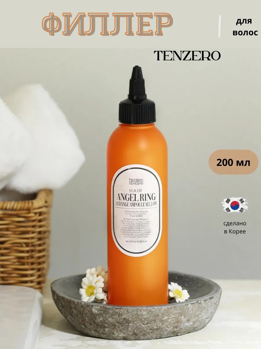 [TENZERO] HAIR ANGEL RING 3 CHANGE AMPOULE YELLOW - 200ML Рецепт мягкого медового масла TENZERO и 8 белков растительного происхождения в высокой концентрации находятся в ампуле.