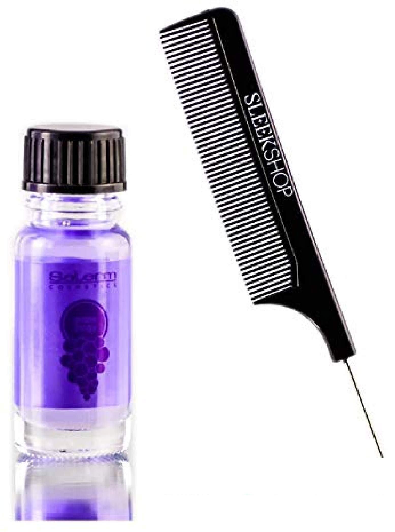 Use with Salerm Grapeology Shampoo and Mask. Quickly-absorbed and residue-free, Grapeology Serum is ideal for color-treated hair and protects the color tone of gray and lightened hair. Increases hair strength and elasticity. Its high antioxidant content gives hair added protection from harmful agents and slows ageing. Grapeology Serum is a natural oil extracted from crushed grapeseed that nourishes and hydrates hair. Its formula with natural grapeseed extract is high in Vitamin E, proteins and arginine, which repairs and improves natural shine. This kit includes a Sleekshop Steel Pin Tail Comb for easy styling, application, and separation of hair!.