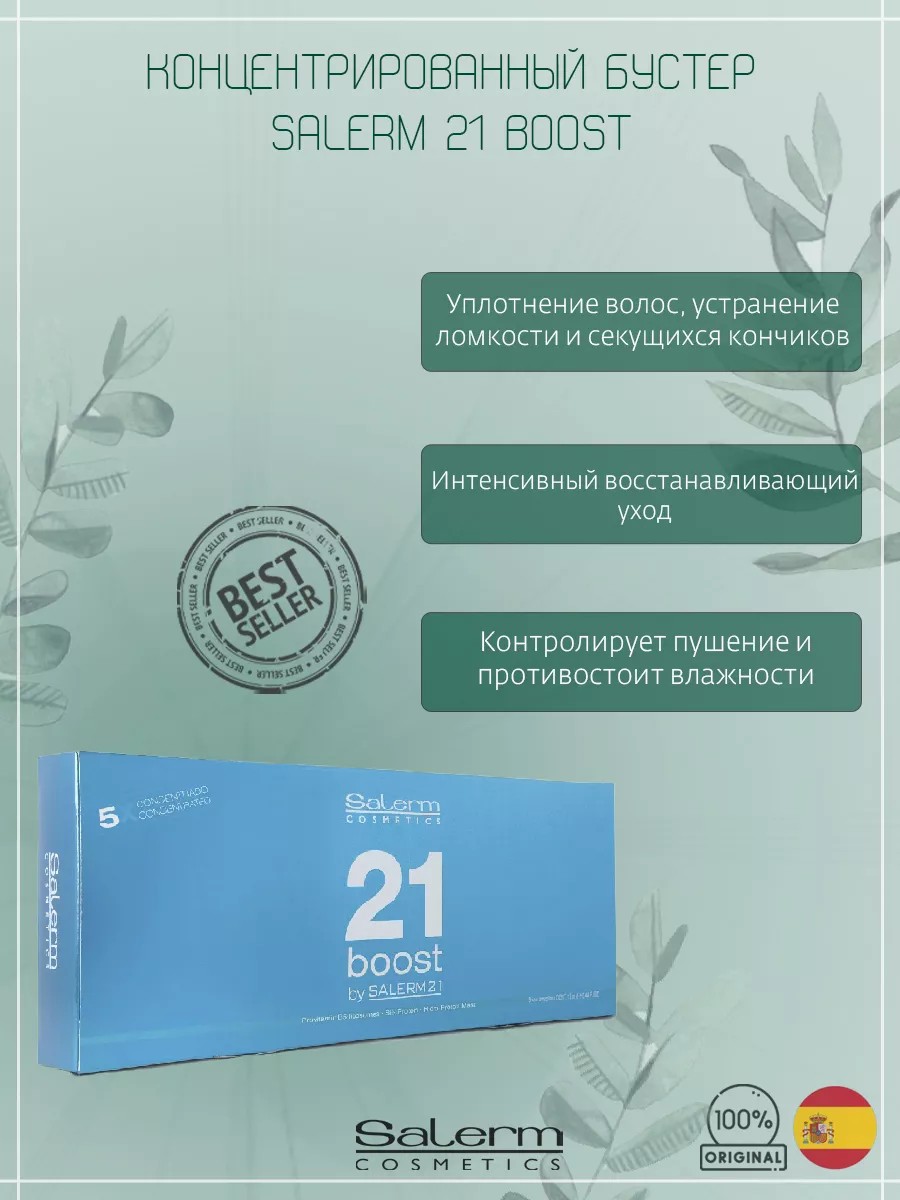 A concentrated professional moisturizing hair mask in ampoules 21 Boost by Salerm 21 for intensive restoration.