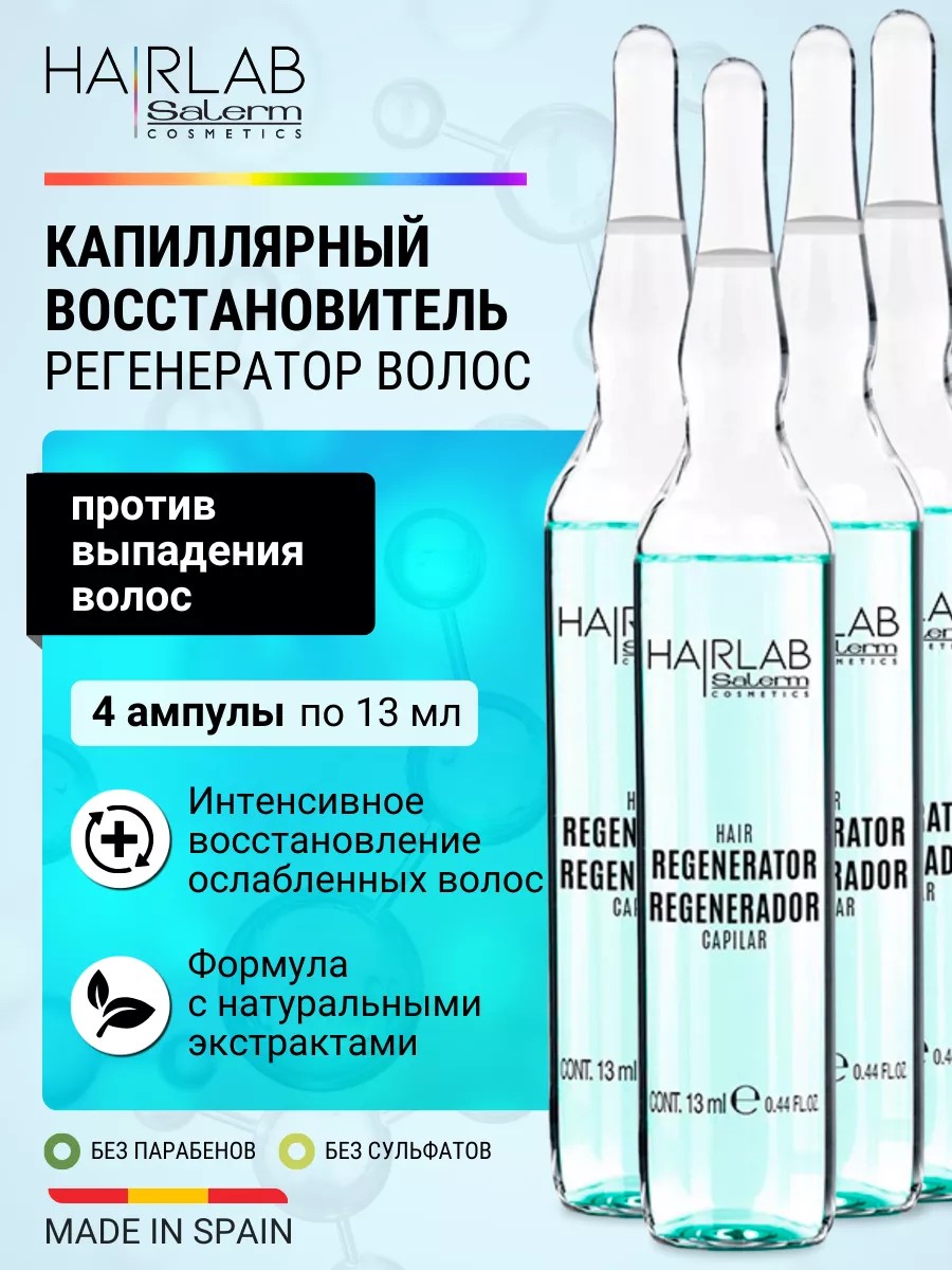 Лосьон «Энергетический восстановитель» Capilar Regenerator от salerm cosmetics- это уходовая косметика в капсулах, стимулятор и активатор, который стимулирует кожу головы и способствует появлению новых здоровых прядей. Применение ежедневной ампулы вместе со стимулирующим массажем оказывает комплексное укрепление, придание жизненной силы, красоты и блеска. Ампульная восстанавливающая сыворотка Salerm HairLab - это шоковый удар активных веществ, необходимых для стабильного клеточного метаболизма и стимулирования циркуляции крови в верхних слоях. Несмываемый уход служит для быстрого sos - восстановления истощенных и безжизненных (в том числе и после окрашивания) волос на молекулярном уровне. Активные компоненты: комплекс растительных протеинов из натуральных экстрактов - активизирует клеточный метаболизм, помогает увеличить приток кислорода к клеткам кожи головы. Complex жизненно необходимых аминокислот и витаминов - усиливает внутриклеточный метаболизм, насыщает питательными веществами и стимулирует рост новых волос. Экстракт кипариса - богат танином и глюкозидами, обладает антисептическим и заживляющим действием. Натуральные кератиновые микромолекулы оказывают лечение и проникают внутрь волоса, восстанавливая его капиллярную структуру, как на поверхности, так и в более глубоких слоях. Кератин для разглаживания заполняет структуру ломких прядей, и выручает от секущихся кончиков, придавая им гладкости. Церамиды - связывают слои кератина в структуре волос. Обеспечивают плотность, эластичность, утолщение и блеск. Средство уход за окрашенными прядями подходит для всех типов, кудрявых и осветленных локонов. Препарат производит профессиональное восстановление пористых и сухих локонов. Способ применения: Нанести на кожу головы. Равномерно распределить по всей длине волос. Выполнить мягкий массаж для стимуляции притока крови и воздействия компонентов. Не смывать. Использовать ампулы 2 раза в неделю, а после курса получения желаемого результата - 1 раз в неделю.