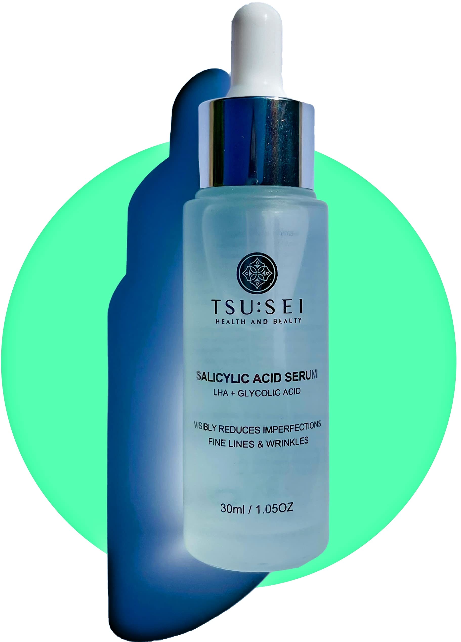 SALICYLIC ACID SERUM for face with Glycolic Acid by TSU:SEI. Tackles and Treats Breakouts Blemishes Spots and Adult Acne. 100% Organic Serum For Face. Cruelty-Free Skin Care. 30ml.