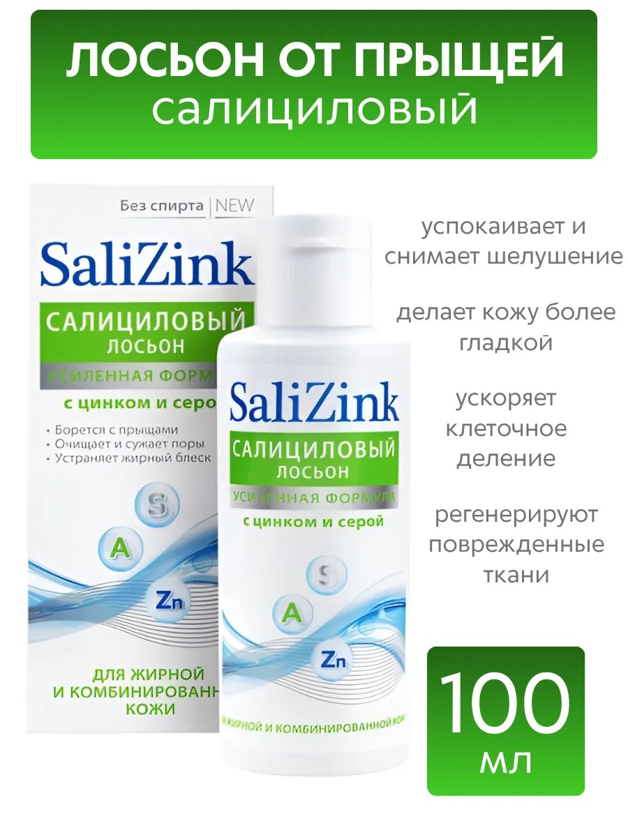 | Полное наименование товара | Salizink Лосьон для жирной и комбинированной кожи салициловый с цинком и серой без спирта 100мл |