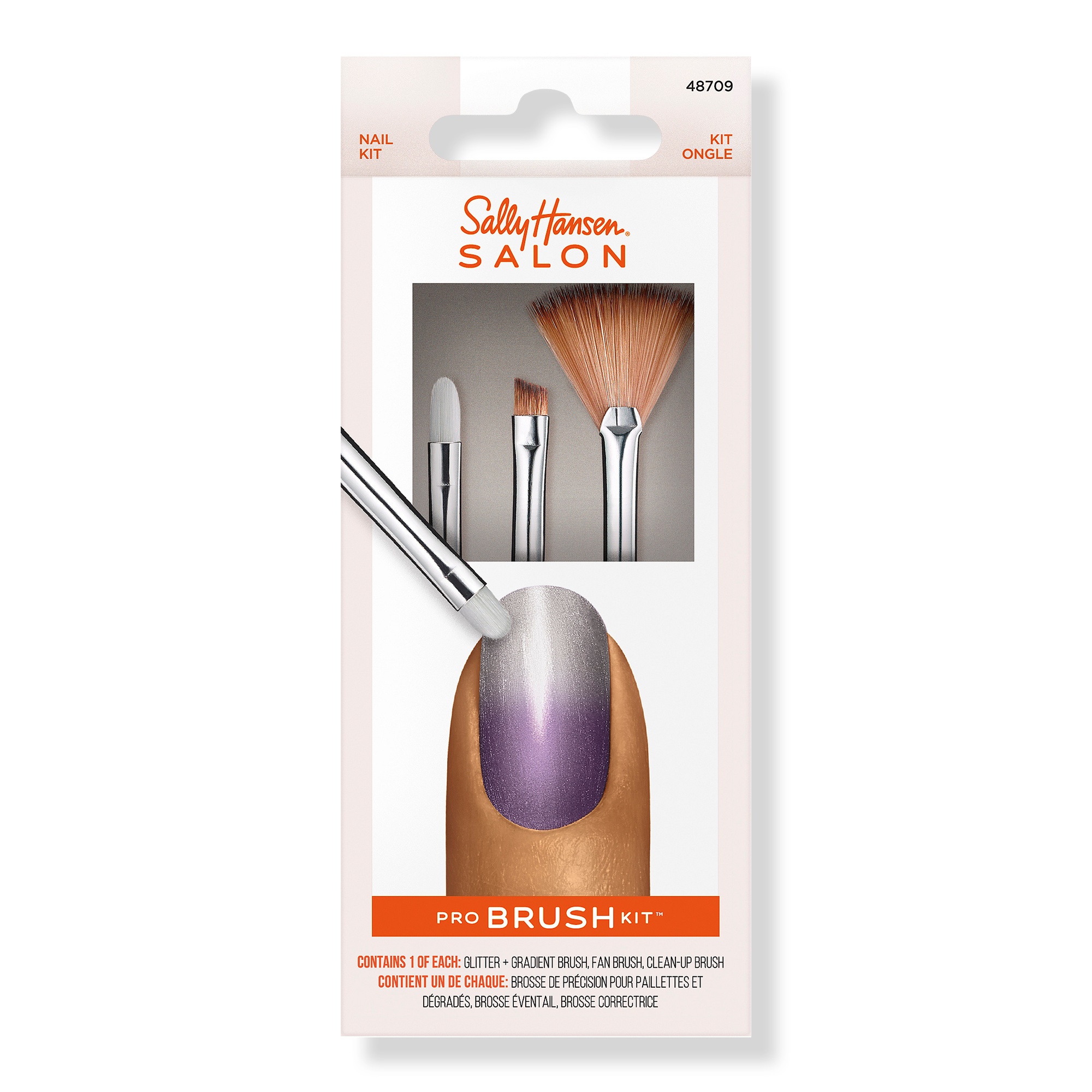 Bring the salon to you with Sally Hansen Nail Salon Pro Brush Kit. Use the Glitter Gradient brush, fan brush and clean-up brush for all your creative designs from the comfort of your own home. Nail art made simple.