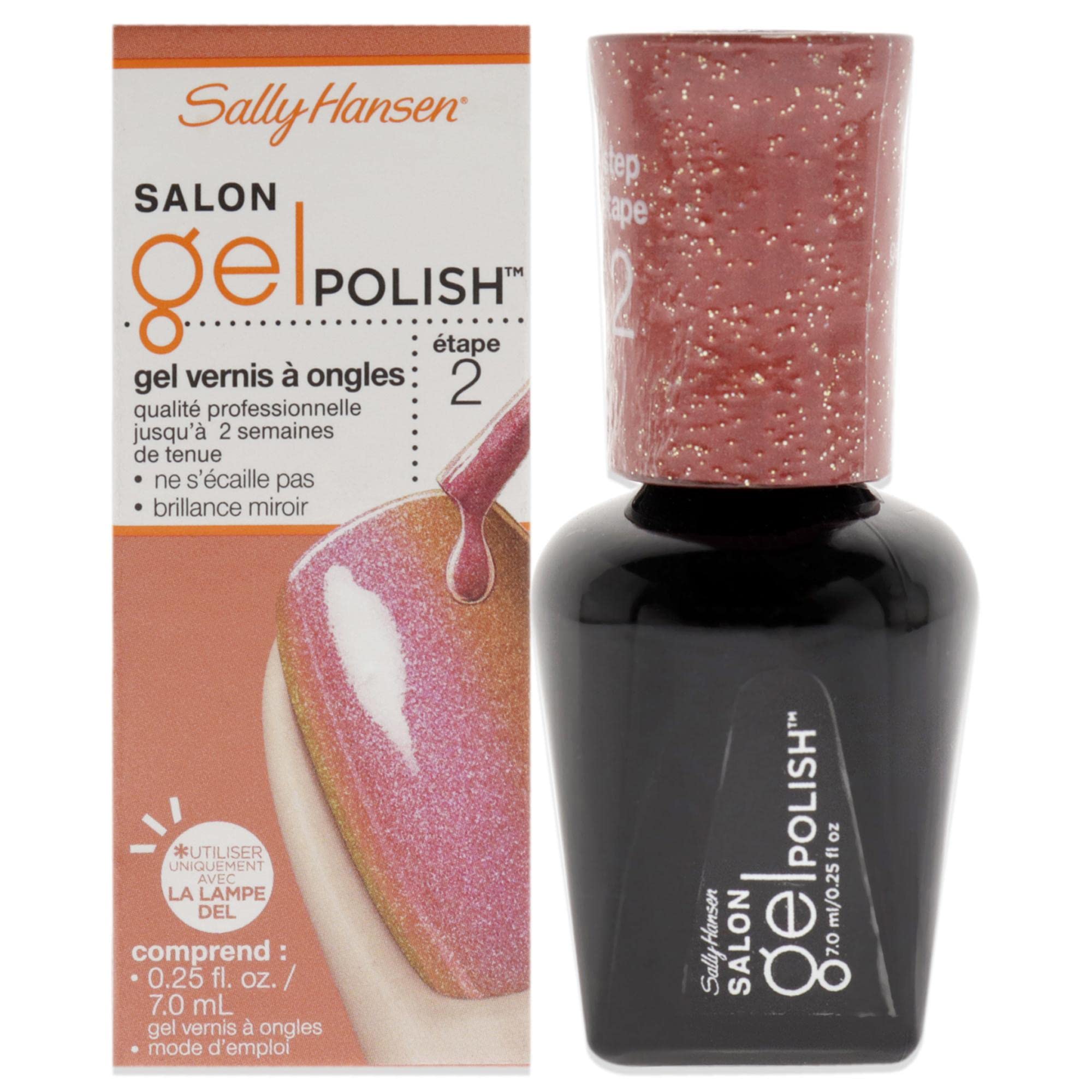 Bring the salon to your nails, not the other way around. Enjoy the gorgeous finish of Sally Hansen Salon Pro Gel Nail Polish Lacquer. This glossy nail polish delivers a mirror shine full of vibrant color. Not only is it chip-resistant, but long-lasting as well, providing up to two weeks of beautiful wear. For best results, use with Sally Hansen LED lamp, gel base, and gel top coat.