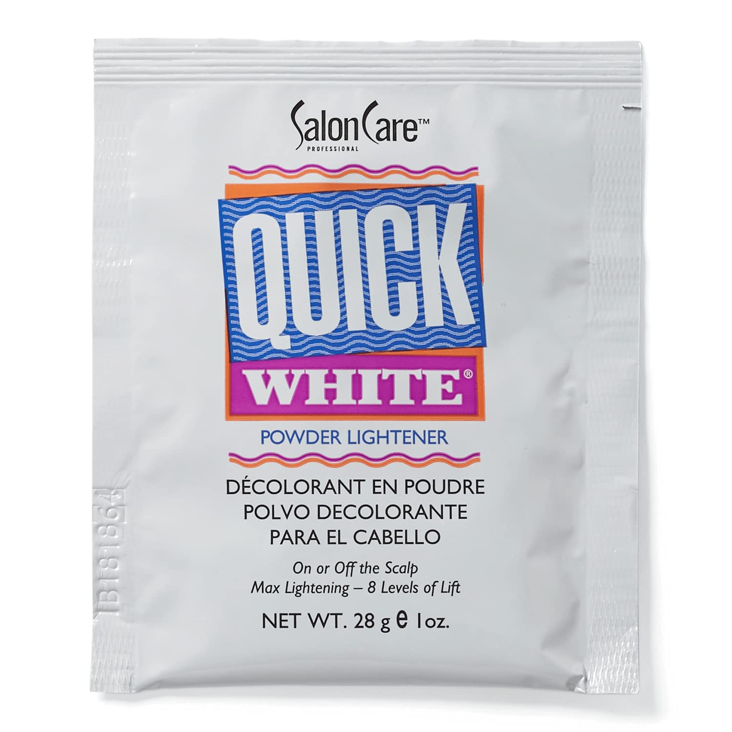 Salon Care Quick White Powder Lightener professional formula forms a rich creamy consistency that is easy to apply. Quick White can be used on or off the scalp with max lightening of 8 levels of lift.