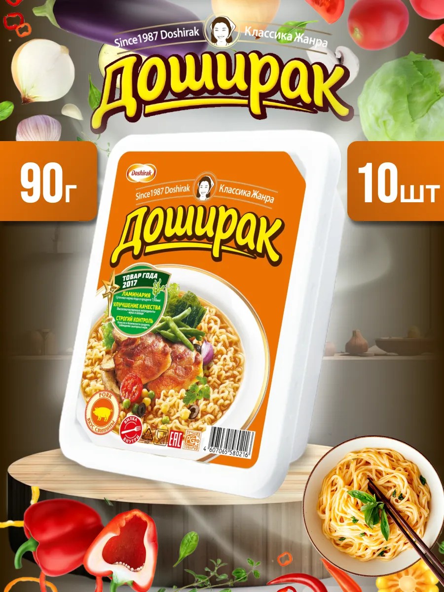 | Количество предметов в упаковке | Доширак 90 грамм со вкусом свинины 10 штук |