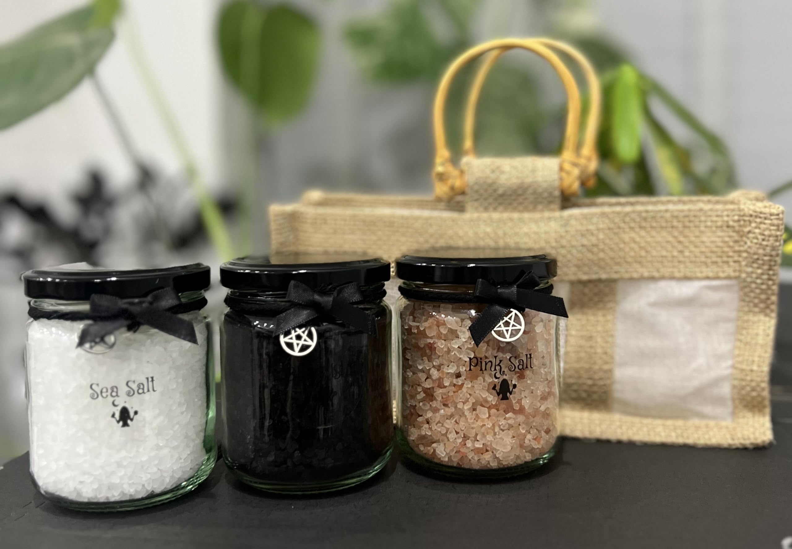 ??Step into the enchanting realm of witchcraft with our captivating witches' set, featuring a trio of salts that will add a touch of magic to your craft and mystical rituals (see Ravens.spells on TikTok for some spell ideas!)?? ??Immerse yourself in the mystical depths of our Sea Salt. Harvested from the purest waters, this salt embodies the essence of the ocean and the power of the tides. Let the sea's energy cleanse and purify, bringing clarity and rejuvenation to your spells and rituals?? ??Explore the alluring allure of our Pink Salt. With its delicate pink hue, this salt carries the gentle vibrations of love and compassion. Its subtle sweetness enhances the power of your rituals while harmonizing your energies, making it an ideal companion for rituals of self-care, healing, and attracting positive relationships?? ??Finally, embrace the transformative energy of our Black Salt. Crafted with activated charcoal, cinnamon, lava salt incense ash and iron cauldron scrapings, this dark and mysterious salt holds the secrets of the night. Its grounding properties provide protection and banishing qualities, making it a powerful tool for warding off negative energies and creating boundaries in your magickal workings.?? ??Each salt in this captivating set is thoughtfully packaged in spellbinding glass jars, tied with enchanting charms. As you sprinkle these salts into your cauldron or scatter them around your home, feel the ancient wisdom and power of witchcraft infuse your rituals, spells, and everyday life.?? ??Whether you are a seasoned practitioner or a curious explorer of the mystical arts, our witches' set of sea, pink, and black salt will awaken your senses, connect you with the forces of nature, and inspire your magickal endeavors?? ??????*Please note that none of these salts are to be consumed.*?????? LEGAL DISCLAIMER ??NOT TO BE CONSUMED??