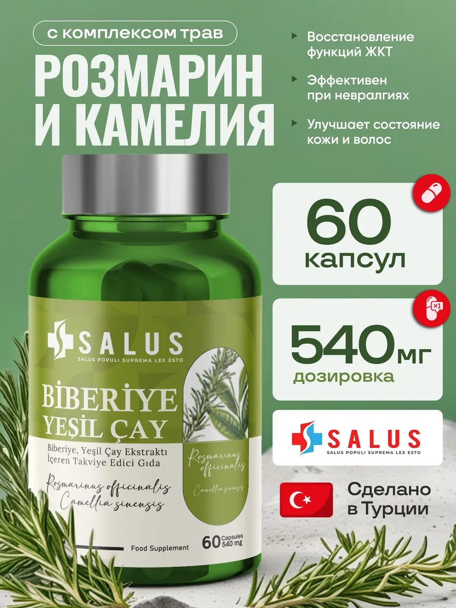 SALUS Розмарин и Камелия +, Детокс. 540 мг, 60 капсул. Турция