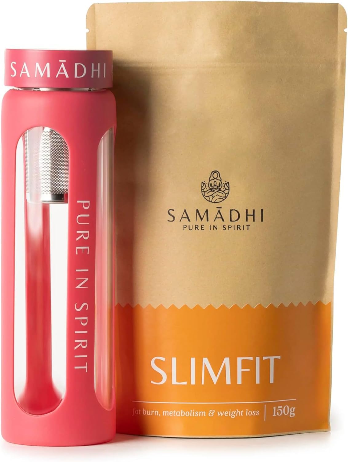 Slimfit tea in a bottle with an infuser: practical and elegant. Enjoy a healthy tea wherever you are. With benefits for your body.ACTIVE METABOLISM: With our Slimfit tea, activate fat burning and promote natural weight loss, enjoying every step towards your ideal figure. ABDOMINAL BLOAT: Experience a feeling of lightness with our tea, designed to reduce water retention and minimize abdominal bloating. CIRCULATION AND VITALITY: Enrich your body with our gourmet tea, which promotes better blood circulation and a healthy balance thanks to premium ingredients. Dazzling Figure: Slimfit tea, packed with essential nutrients and free of chemicals, accompanies you on your slimming journey. STYLISH BREW BOTTLE: Enjoy your Slimfit tea on the go with our 550ml bottle, the ultimate accessory for tea lovers who appreciate convenience and style.Thé Slimfit dans une bouteille avec infuseur : pratique et élégant. Savourez un thé sain où que vous soyez. Avec des bienfaits pour l'organisme.MÉTABOLISME ACTIF : Avec notre thé Slimfit, activez la combustion des graisses et favorisez la perte de poids naturelle, en profitant de chaque étape vers votre silhouette idéale. BLOAT ABDOMINAL : Faites l'expérience d'une sensation de légèreté grâce à notre thé, conçu pour réduire la rétention d'eau et minimiser le ballonnement abdominal. CIRCULATION ET VITALITÉ : Enrichissez votre corps avec notre thé gourmet, qui favorise une meilleure circulation sanguine et un équilibre sain grâce à des ingrédients de première qualité. Silhouette éblouissante : le thé Slimfit, chargé de nutriments essentiels et exempt de produits chimiques, vous accompagne sur le chemin de la minceur. BOUTEILLE D'INFUSEUR ÉLÉGANTE : Savourez votre thé Slimfit en déplacement grâce à notre bouteille de 550 ml, l'accessoire ultime pour les amateurs de thé qui apprécient la commodité et le style.Samadhi - Bouteille à thé et infuseur Slimfit du Portugal - 550ml - Gourmet et sain pour une silhouette galbée