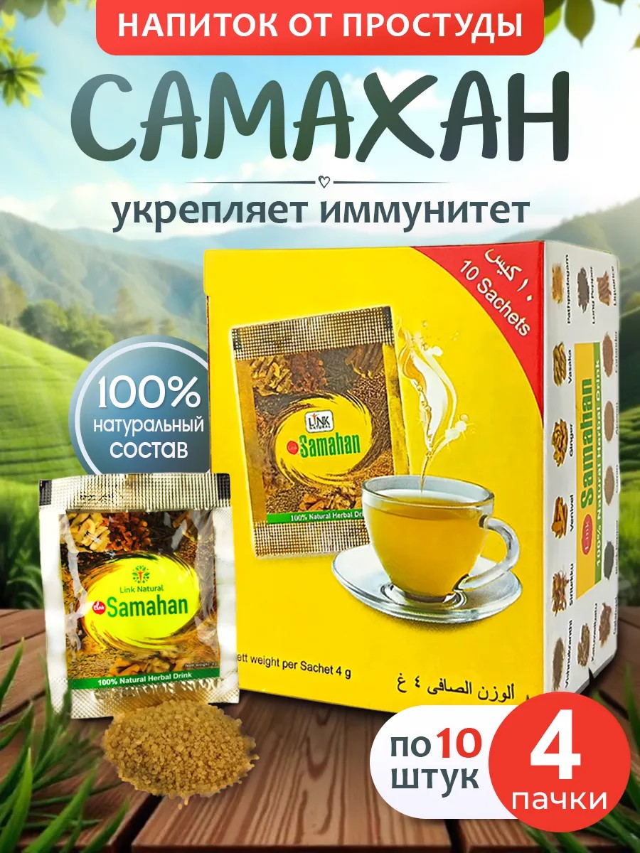 Самахан — это полезный напиток, который состоит из 14 трав и тростникового сахара. Не содержит ароматизаторы и красители — только натуральные ингредиенты. Согревающий напиток обладает отхаркивающим, болеутоляющим, жаропонижающим, противовоспалительным свойствами. Пряный чай пьют и как общеукрепляющее средство для повышения иммунитета. Натуральный чай на лечебных травах можно сравнить с порошком от гриппа и простуды. Пакетированный чай из Шри-Ланки можно добавлять в чай и другие напитки, а также пить охлажденным как фито чай.