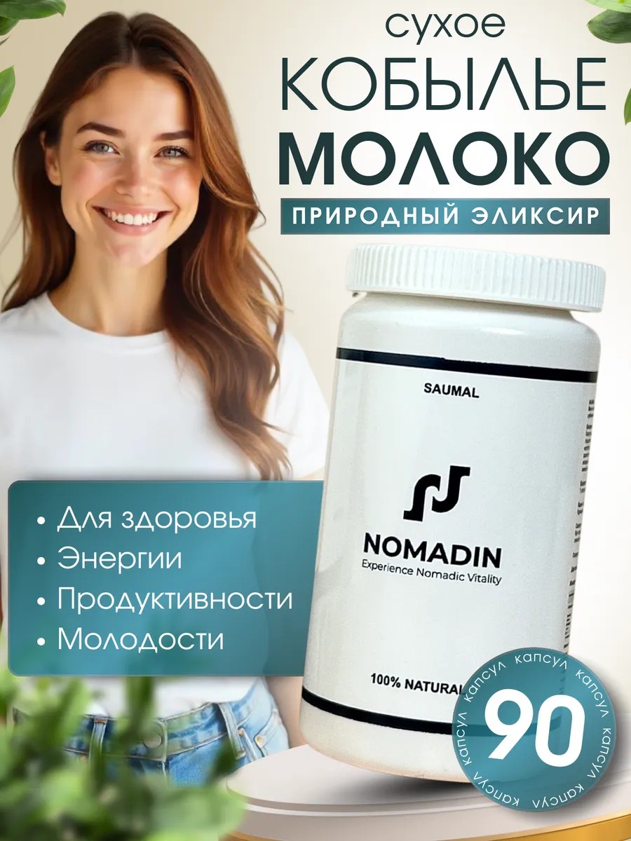 Саумал - сухое кобылье молоко в капсулах - это концентрированный продукт, полученный из натурального кобыльего молока. Молоко обрабатывается специальной технологией сушки, сохраняя все полезные вещества. В 1 капсуле содержится 40 видов иммуноглобулинов, более 30 витаминов групп A, B, C, D, E, лактоза, глюкоза, ненасыщенные жирные кислоты (линолевая, линоленовая, арахидоновая) и молочные ферменты. Также могут присутствовать минералы, такие как магний, кальций, селен, цинк и железо. Данный продукт обладает целым набором полезных свойств: