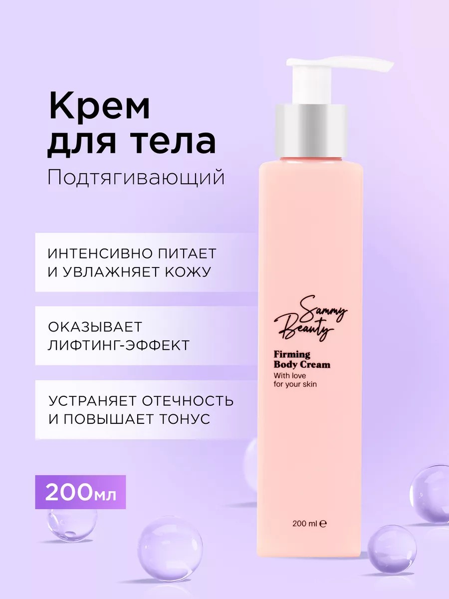 СЕМИ БЬЮТИ Подтягивающий крем с пептидами для профессионального ухода за телом Firming Body Cream Sammy Beauty. Обеспечивает глубокое питание и увлажнение, избавляет от сухости и шелушений. Оказывает лифтинг эффект: способствует подтяжке и повышению упругости. Снижает проявление отеков и обеспечивает восстановление кожи. Натуральный состав подходит для всех типов кожи: нормальной, жирной и комбинированной, очень сухой и чувствительной, зрелой и подростковой, мужской и женской. Органическое средство содержит витамин Е, который оказывает антивозрастной эффект: замедляет процессы старения, помогая оставаться коже молодой. Пантенол пробуждает восстанавливающие процессы в обезвоженной коже, даря ей нежность и красоту. Также оказывает питающее действие и устраняет сухость. Кофеин обеспечивает антицеллюлитный эффект, предотвращает появление растяжек, повышает тонус и упругость возрастной кожи. Масло миндаля интенсивно питает и восстанавливает, масло ши увлажняет, делает кожу шелковистой и придает здоровое сияние. Ароматизированный лосьон с легким приятным ароматом. Способ применения: нанести питательное средство на чистую кожу, массировать до полного впитывания. Уделить особенное внимание проблемным зонам: рук и ног, живота и декольте, шеи и груди. Крем с дозатором легко распределяется и быстро впитывается, не оставляя жирной пленки. Результат: подтянутая и увлажненная кожа. Дневной крем можно использовать ежедневно после ванны или душа. Уходовая органик косметика – подарок для женщин на новый год и рождество, девушек на 8 марта. Новогодние премиум подарочки девочек подростков. Парфюмерный крем с нежным запахом. Подарочный парфюмированный крем в эстетичной розовой упаковке от российского бренда