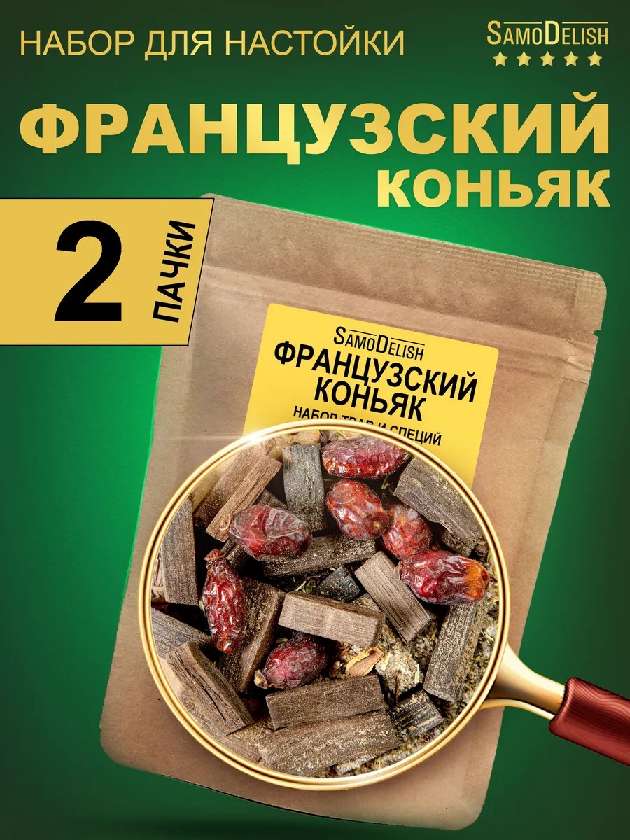 FRENCH COGNAC Tincture 58g is a set of herbs and spices for making the eponymous drink at home. The set includes the following ingredients: St. John's wort, nutmeg, cinnamon, rose hips, peppercorns, vanillin, oak cubes, and black tea. Using the FRENCH COGNAC tincture set, you will get a caramel-colored drink with a tart and bitter taste like the original drink. The drink's flavor reveals oak notes, which are successfully complemented by spicy vanilla nuances. Recommended preparation: pour the contents of the package with 2 liters of moonshine or 40% vodka. Infuse for 10-14 days, shaking the infusion periodically. After infusing, filter (strain) and pour into a convenient container. BE SURE to let the drink rest for 7-10 days, then you can taste it.