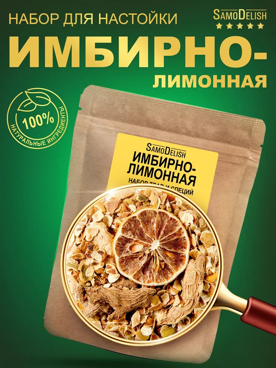 Настойка ИМБИРНО-ЛИМОННАЯ 30 гр - это набор трав и специй для приготовления в домашних условиях напитка, обладающего мощными противовоспалительными свойствами. В состав набора входят следующие ингредиенты: имбирь, сублимированные дольки лимона, цедра лимона.Используя набор для настойки ИМБИРНО-ЛИМОННАЯ, вы получите напиток легкого соломенного оттенка с манящим цитрусовым ароматом. Вкус напитка умеренно жгучий с освежающими лимонными нотками. Настойка имеет оздоравливающий эффект, способствует укреплению иммунитета (при употреблении в небольших количествах) и помогает бороться с вирусными инфекциями.Рекомендуемый способ приготовления: содержимое упаковки залить 2 литрами самогона или водки 40% крепости. Добавить по вкусу 1 столовую ложку меда. Настаивать 7-10 дней, периодически встряхивая настой. После настаивания отфильтровать (процедить) и перелить в удобную ёмкость. ОБЯЗАТЕЛЬНО дать напитку отдохнуть 7-10 дней, после можно дегустировать.