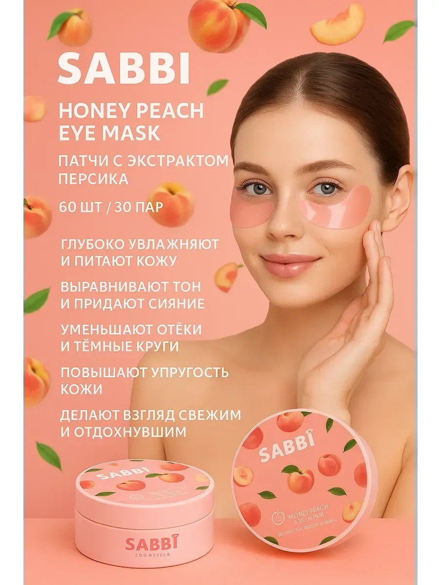 | Полное наименование товара | Гидрогелевые патчи для глаз SABBI Honey Peach Eye Mask с экстрактом персика |