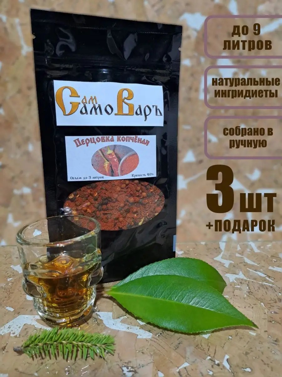 Состав: перец красный чили, перец черный горошек, паприка красная, перец белый горошек, паприка копченая. Крепость готового продукта: 40%. Наш сбор упакован в zip-lock пакет, дополнительно упакован в высоко качественную плотную прозрачную пленку, все это позволяет обеспечить надежную и качественную доставку заказчику. Сбор «СамСамоваръ» подходит как для любителей средне-крепких напитков (коктейлей, ликеров), так и для любителей крепких напитков, а так же для тех кто хочет попробовать что-то новое.
