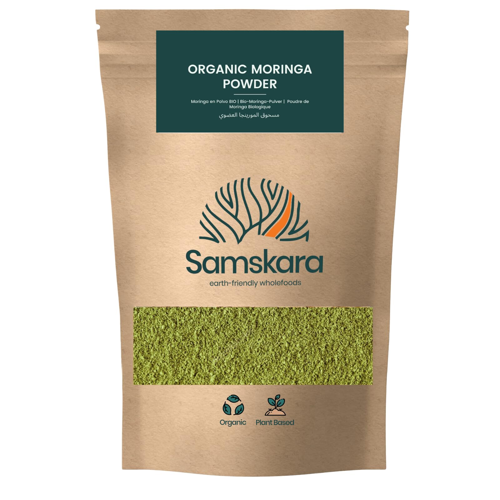 Our Moringa, of Spanish origin, is considered by us to be one of the most remarkable and complete superfoods thanks to its comprehensive nutritional profile. It has become popular for its properties in combating skin problems and protecting against excessive sun exposure (UV)! Contains significant amounts of vitamins A, C, and E, calcium, and potassium. Protein with a very complete amino acid profile! Studyed to contain 46 types of antioxidants 92 nutrients and anti-inflammatory properties. Strengthens the immune system and supports the nervous system. Ideal for consumption with tea, juice, smoothies, and water. A great skin protectant. Vegan Vegetarian Gluten-Free Kosher Friendly Non-GMO, nut-free. Gram for gram. 10 times more vitamin A than carrots. 2 times more vitamin C than oranges. 17 times more calories than milk 15 times more potassium than bananas 25 times the amount of iron as spinach 9 times more protein than yogurt. Recommended use: 3 to 7 grams per day depending on activity level Our Spanish-origin Moringa, we believe, is one of the most remarkable and complete superfoods thanks to its comprehensive profile! Popularized thanks to its properties that combat skin problems and protect against excessive sun exposure (UV)! Contains significant amounts of Vitamins A, C, and E, calcium, and potassium. Protein with a very complete amino acid profile! Studyed to contain 46 types of antioxidants 92 nutrients and anti-inflammatory properties Strengthens the immune system and supports the nervous system Ideal for consuming tea, juices, smoothies, and water Excellent skin protection. DISCLAIMER The information on this page is for informational purposes only and should never be considered a substitute for medical advice. The information on this site should never be used for medical diagnosis or treatment. If necessary, consult your doctor, general practitioner, dietitian, or nutritionist before starting any diet, exercise, or supplementation program, before taking any medication or nutritional supplement, or if you have or suspect you may have a health problem.Moringa Powder SAMSKARA SUPERFOODS 100 Naturel (1kg)DESCRIPTION DU PRODUIT DESCRIPTION DU PRODUIT Notre Moringa d'origine espagnole, nous pensons que c'est l'un des superaliments les plus remarquables et complets grâce à son profil si complet. popularisé grâce à ses propriétés pour lutter contre les problèmes dermologiques comme protection contre l'exposition solaire excessive (UV) ! Contient des quantités importantes de vitamine A, C et E, calcium, potassium. Protéine avec un profil d'acides aminés très complet ! Étudié pour contenir 46 types d'antioxydants 92 nutriments et propriétés anti-inflammatoires. Renforce le système immunitaire et aide le système neurologique. Consommation idéale avec thé, jus, smoothies et eau. Grand protecteur de cuir. Vegan Végétarien Sans Gluten Amical Kosher Sans OGM, sans noix Gramme par gramme. 10 fois plus de vitamine A que les carottes. 2 fois plus de vitamine C que les oranges. 17 fois plus de calories que le lait 15 fois plus de potassium que les bananes. 25 fois la quantité de fer que les épinards. 9 fois plus de protéines que le yaourt. Utilisation conseillée : 3 à 7 grammes par jour selon le niveau d'activité et physique. Our spanish Origin Moringa, We believe is one of the most remarkable and complete Superfoods thanks to its so complete profile! popularisé thanks to its properties combating dermological problems as protection against excessive Sun exposure (UV) ! Contains significant amounts of Vitamin A, C and E, calcium potassium. Protéine avec un profil acide aminé très complet ! Étudié pour contenir 46 types d'antioxydants 92 nutriments et propriétés anti-inflammatoires. Strengthens the immunological system and helps the neurological system. Idéal pour consommer du thé, des juices, des smoothies et de l'eau. Excellente peau de protection. CLAUSE DE NON-GARANTIE Les informations sur cette page sont de nature informative et ne doivent jamais être interprétées comme un substitut à un avis médical. Les informations sur ce site ne doivent jamais être utilisées comme diagnostic ou traitement médical. Si nécessaire, consultez votre médecin, votre médecin généraliste, votre diététiste ou votre nutritionniste avant de commencer tout régime, exercice ou programme de supplémentation, avant de prendre tout médicament ou complément nutritionnel, ou si vous avez ou soupçonnez que vous pourriez avoir un problème de santé.