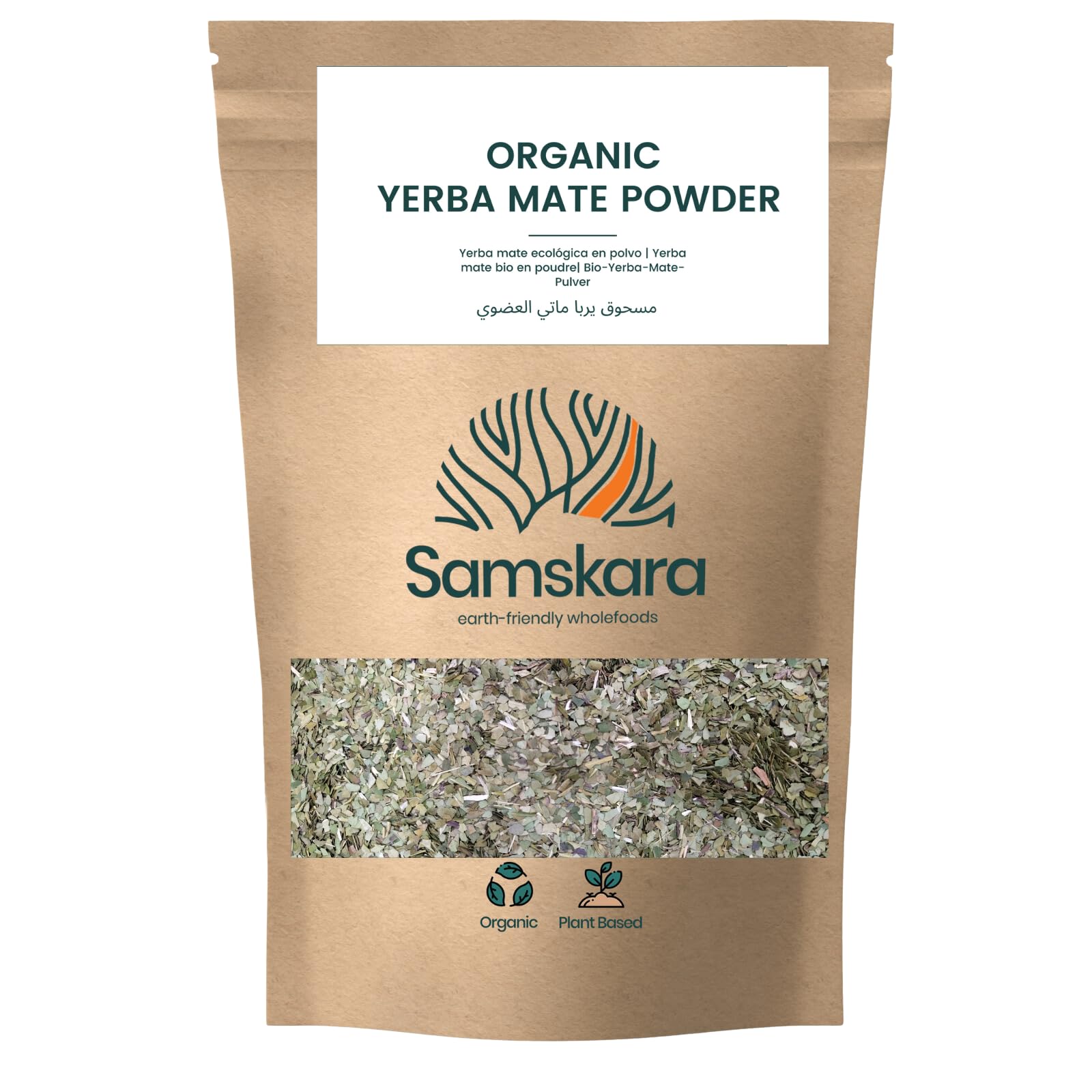 Samskara's pure, organic yerba mate is the secret to an energizing day without artificial stimulants. Sourced from organic and sustainable farms, our mate is carefully harvested by skilled hands and meticulously processed to preserve its natural properties. Rich in antioxidants: Packed with antioxidants, vitamins, and minerals that contribute to your overall well-being. Blend it into your morning smoothie, sprinkle it into energy bars, or mix it with your coffee for an extra boost. Clean, sustainable energy: Stay focused and alert without jitters or lows, and enjoy a healthier, more vibrant life! Embrace the earthy taste, boost your day, and unleash your natural potential! Our yerba mate powder is packaged in a Kraft bag made from recycled materials, with a zipper closure for easy storage. After use, please recycle reuse effectively and sustainably. Store in a cool, dry place away from direct sunlight. ✓ Yerba Mate powder is organic, non-GMO, vegan-friendly, and additive-free – 100 natural goodness from Brazil!Yerba mat en poudre BIO Biologique Samskara Augmente l'énergie et la concentration Origin Brazil Meilleur pour les smoothies (250g x 1 pack)DESCRIPTION DU PRODUIT La yerba mate pure et organique de Samskara, le secret d'une journée pleine d'énergie sans stimulants artificiels. Originaire de fermes biologiques et durables, notre maté est soigneusement récolté par des mains habiles et méticuleusement transformé pour préserver ses propriétés naturelles. Riche en antioxydants : rempli d'antioxydants, de vitamines et de minéraux qui contribuent à votre bien-être général. Mélangez-le avec votre smoothie matinal, saupoudrez-le dans des barres énergétiques ou mélangez-le avec votre café pour lui donner une touche supplémentaire Énergie propre et durable : Restez concentré et alerte sans nerfs ni bas, et profitez d'une vie plus sain et vibrant ! Embrassez le goût terreux, boostez votre journée! et libérez votre potentiel naturel! Notre poudre de Yerba Mate est emballée dans un sac Kraft fabriqué à partir de matériaux recyclés, avec une fermeture éclair pour un rangement facile. Une fois utilisé, veuillez recycler réutiliser de manière efficace et durable. Stocker dans un endroit frais, sec et à l'abri de la lumière directe du soleil. ✓ La poudre de Yerba Mate est biologique, non OGM, adaptée aux végétaliens et sans additifs - 100 de bonté naturelle du Brésil! nan