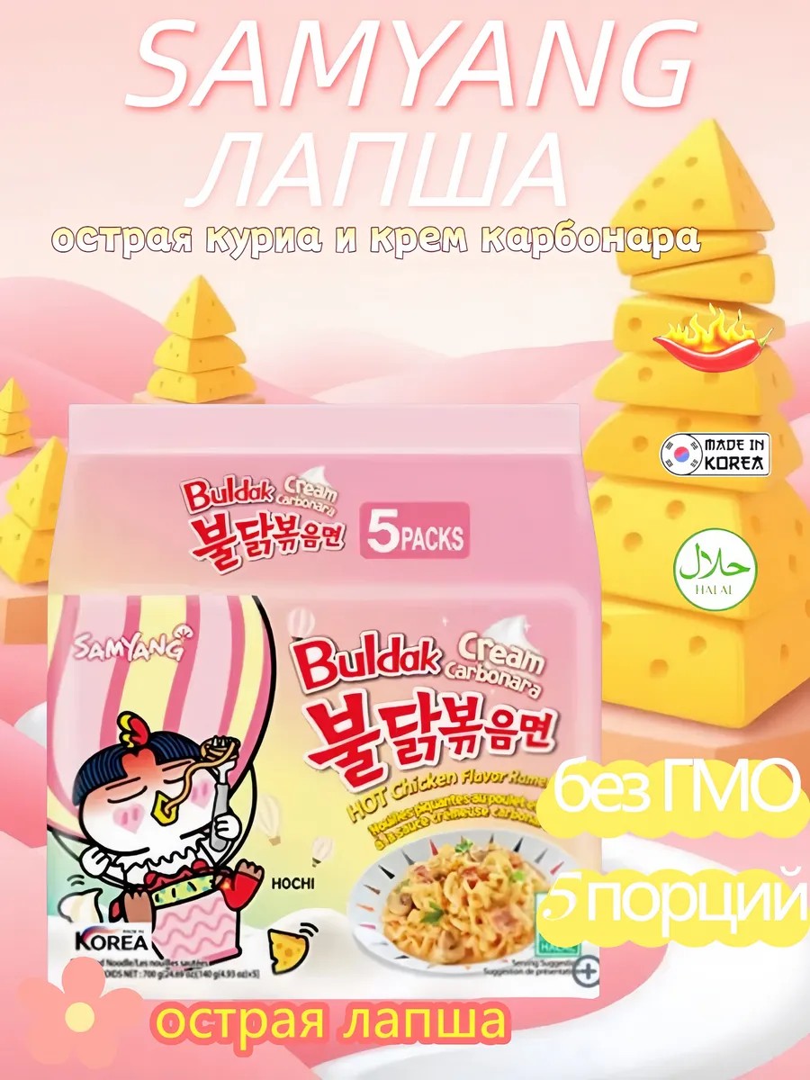 | Комплектация | Лапша корейская острая со вкусом карбонара - 5 шт |